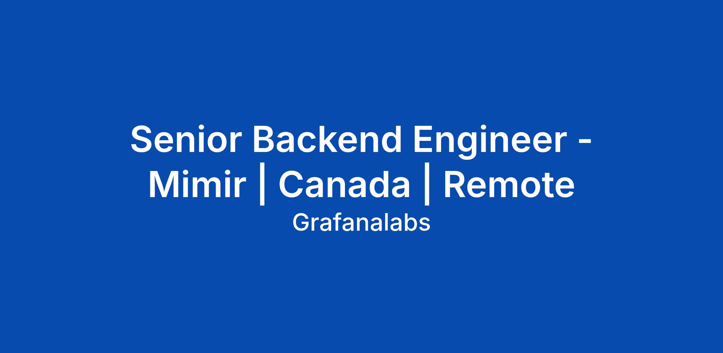 Senior Backend Engineer - Mimir | Canada | Remote