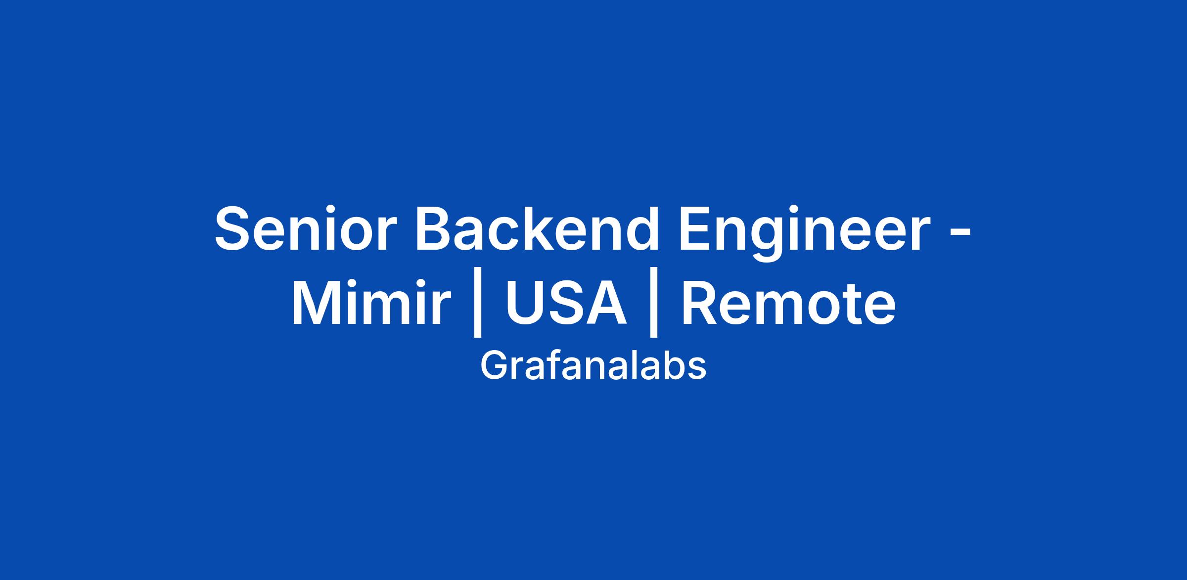 Senior Backend Engineer - Mimir | USA | Remote