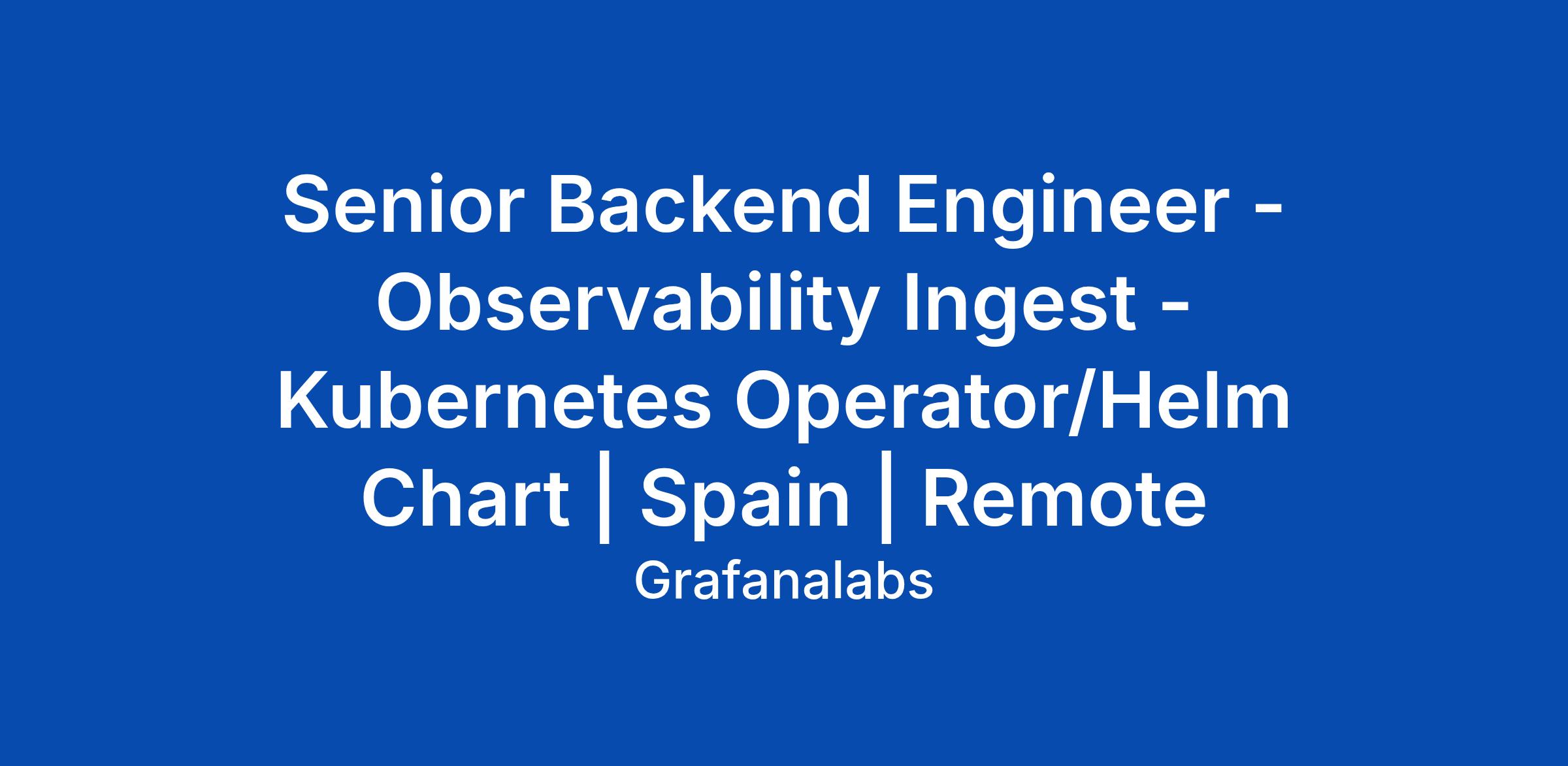 Senior Backend Engineer - Observability Ingest - Kubernetes Operator/Helm Chart | Spain | Remote