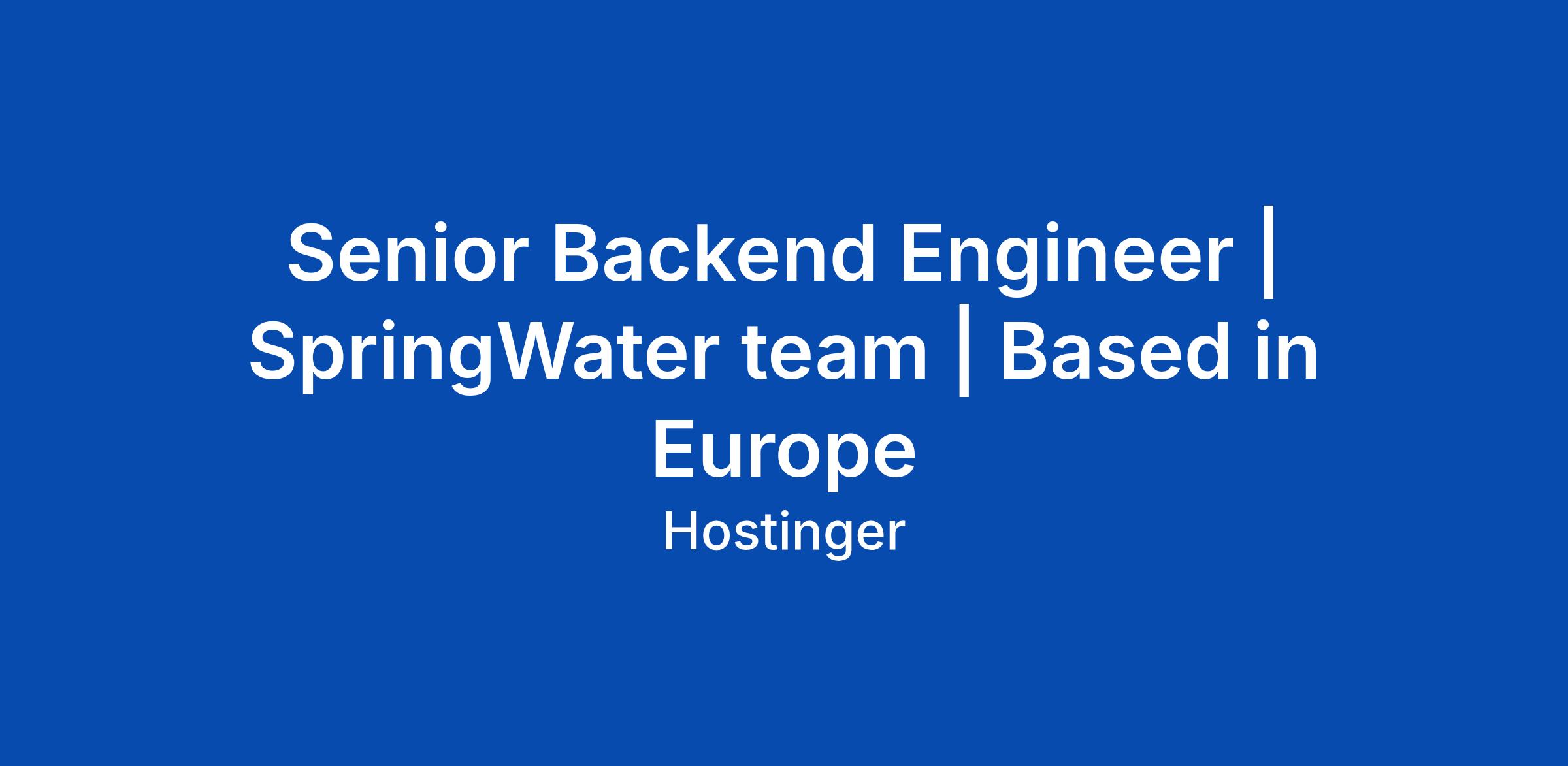 Senior Backend Engineer | SpringWater team | Based in Europe