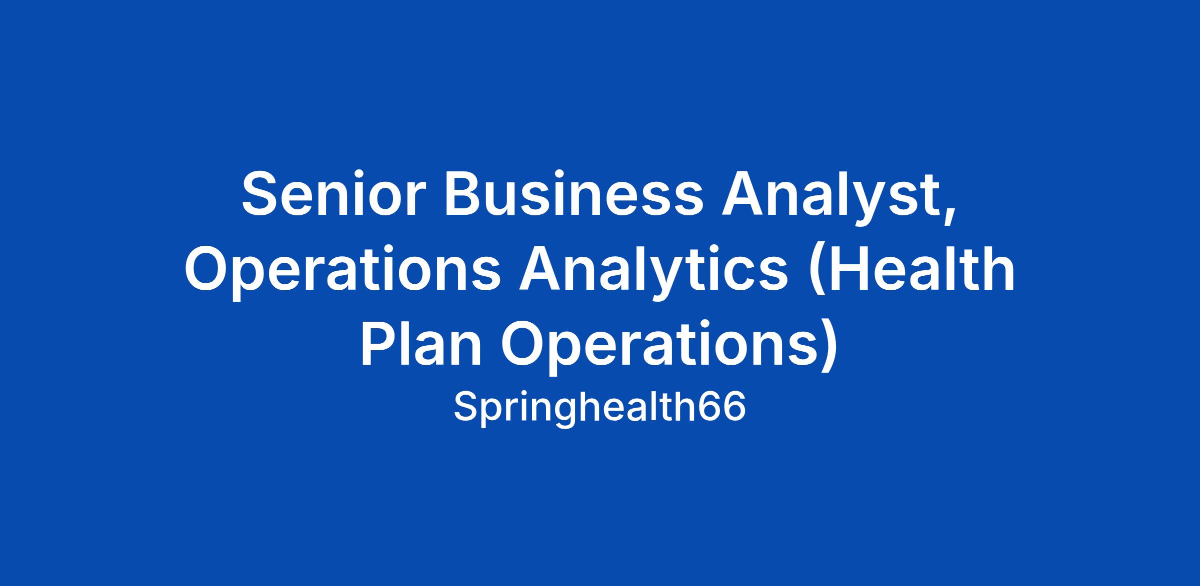 Senior Business Analyst, Operations Analytics (Health Plan Operations)