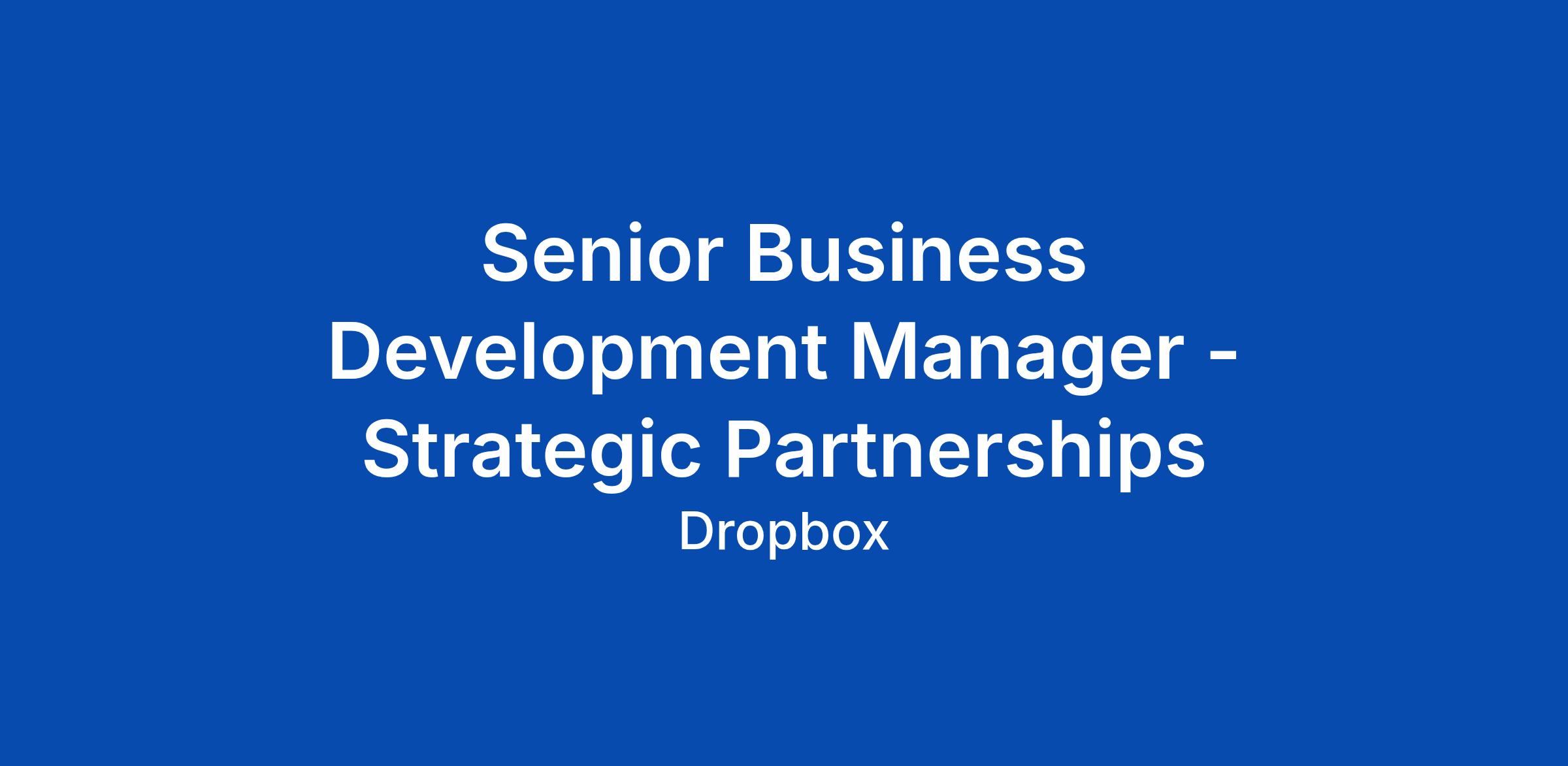 Senior Business Development Manager - Strategic Partnerships