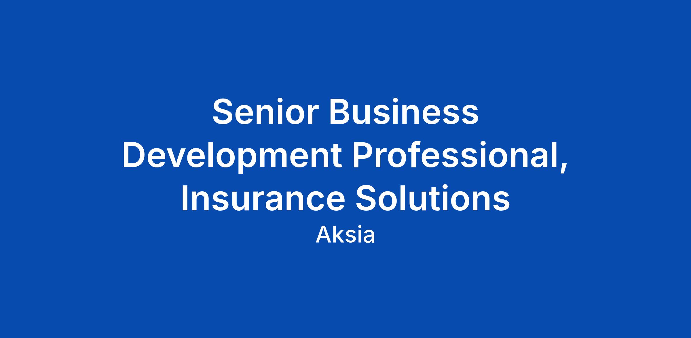 Senior Business Development Professional, Insurance Solutions
