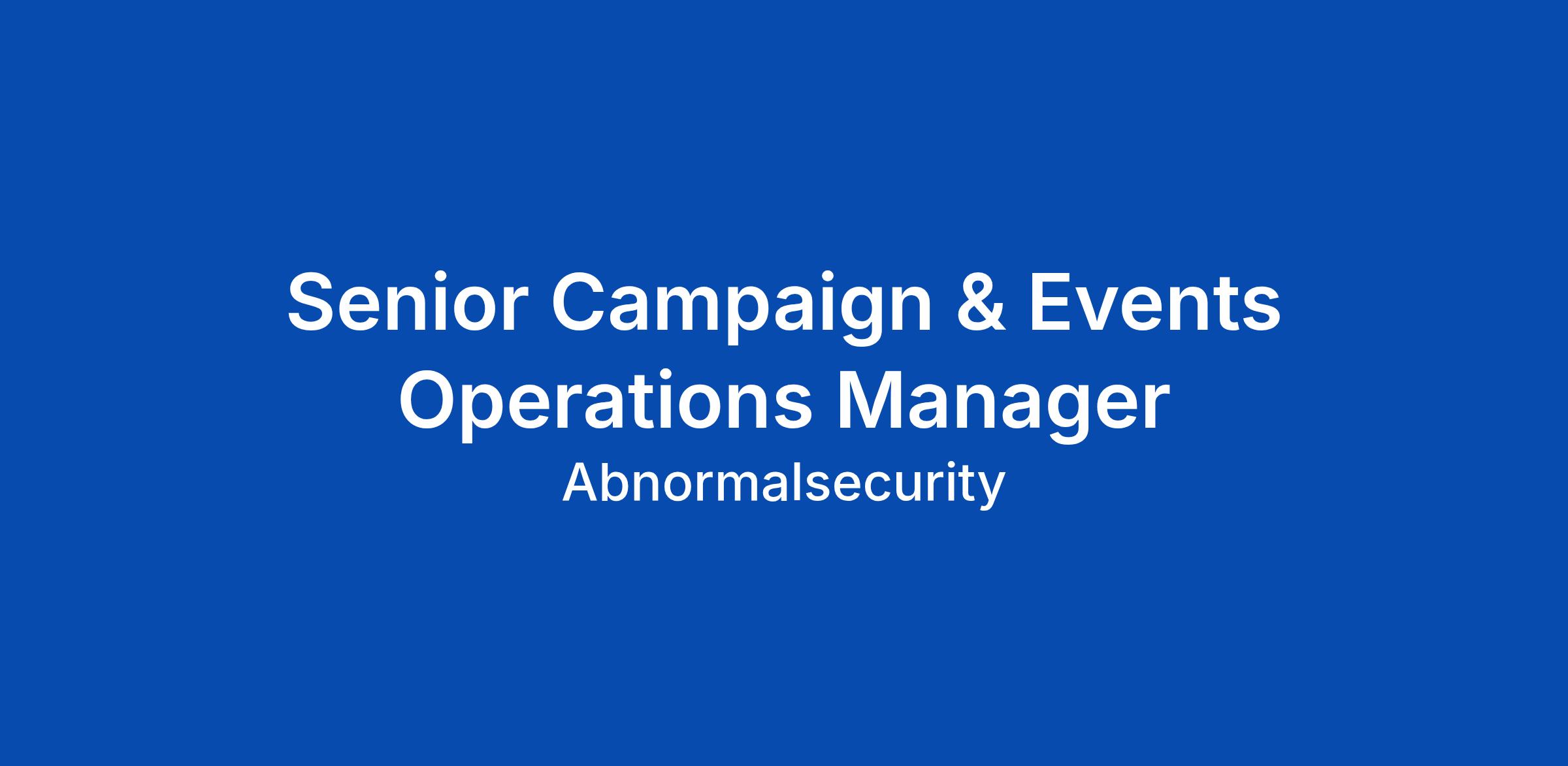 Senior Campaign & Events Operations Manager