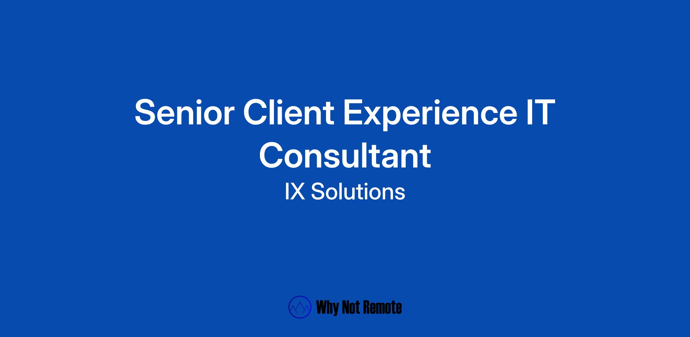 The Senior IT Consultant, Client Experience understands the challenges clients consistently face and collaborates with client stakeholders and other IX Solutions employees to make well-informed recommendations and resolve technical issues proactively and reactively.