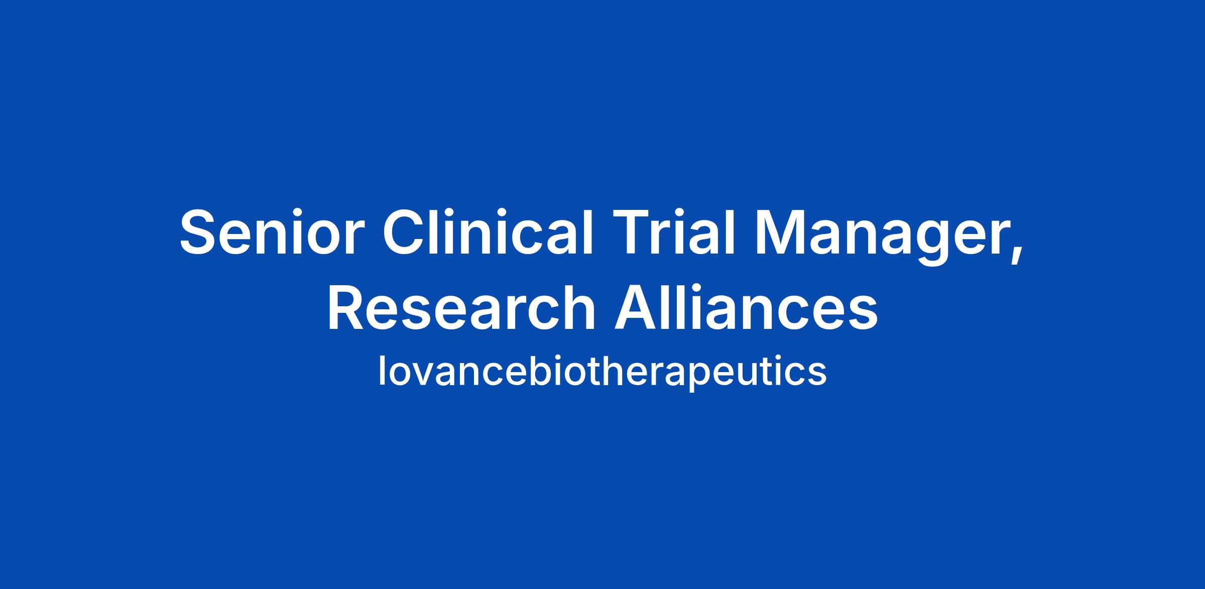 The Senior Clinical Trial Manager (CTM) in the Research Alliances team will independently lead and is accountable for the planning, execution, management, and reporting of clinical projects supporting Iovance commercial activities, including Expanded Access Programs (intermediate EAP, single-patient and Ex-US Access Programs) and Phase 4 post marketing studies. Β In addition, the Sr. CTM/CTM will provide operational leadership for studies within a growing portfolio of Investigator Sponsored collaborations and other non-clinical collabora... Click Apply to read the full job description.