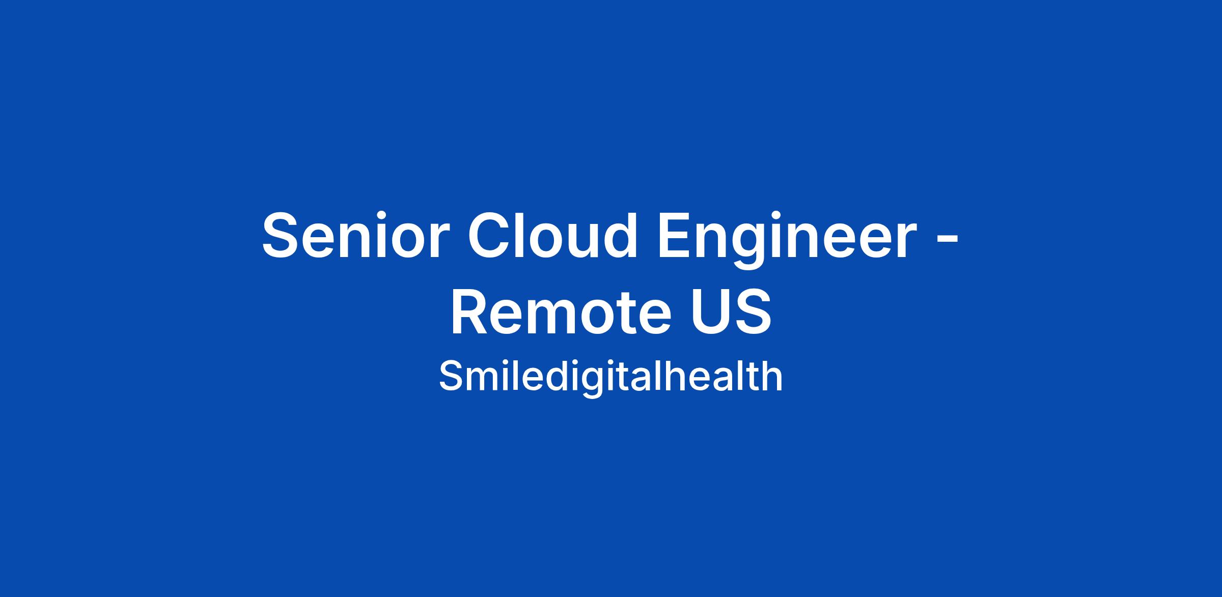 Working for a company like Smile Digital Health means supporting our mandate for #BetterGlobalHealth. We strive towards this goal every day, and the results can be seen in the impact of our innovative health data platform and data management solutions, which are used in over 20 countries. We were #19 on Deloitte's Technology Fast 50 Ranking for 2024! Smile Digital Health makes it easy for healthcare stakeholders to collect and exchange data with our leading FHIR-based data liberation platform. At its heart, the Smile platform enables people and organizations to better manage healthcare data. We help generate and liberate structured healthcare data to ensure effective delivery across care teams and health systems bringing #BetterGlobalHealth to patients everyday! Apply today and find plenty of reasons to SMILE! The Cloud Engineer is responsible for designing, building and maintaining cloud hosted services and platforms to support Smile Digital Healthβs SaaS and offering. This includes, but not limited to, owning the development and maintenance of deployment artifacts such as HELM charts, docker container/ compose configurations, infrastructure as code and build/deployment/automation... Click Apply to read the full job description.