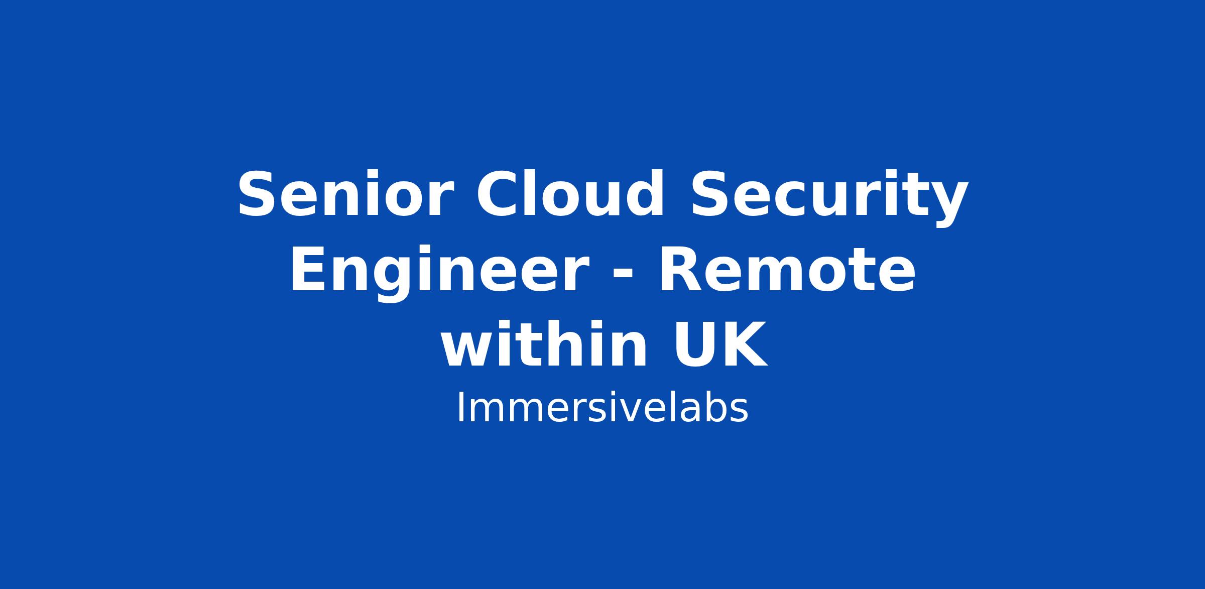 Senior Cloud Security Engineer - Remote within UK