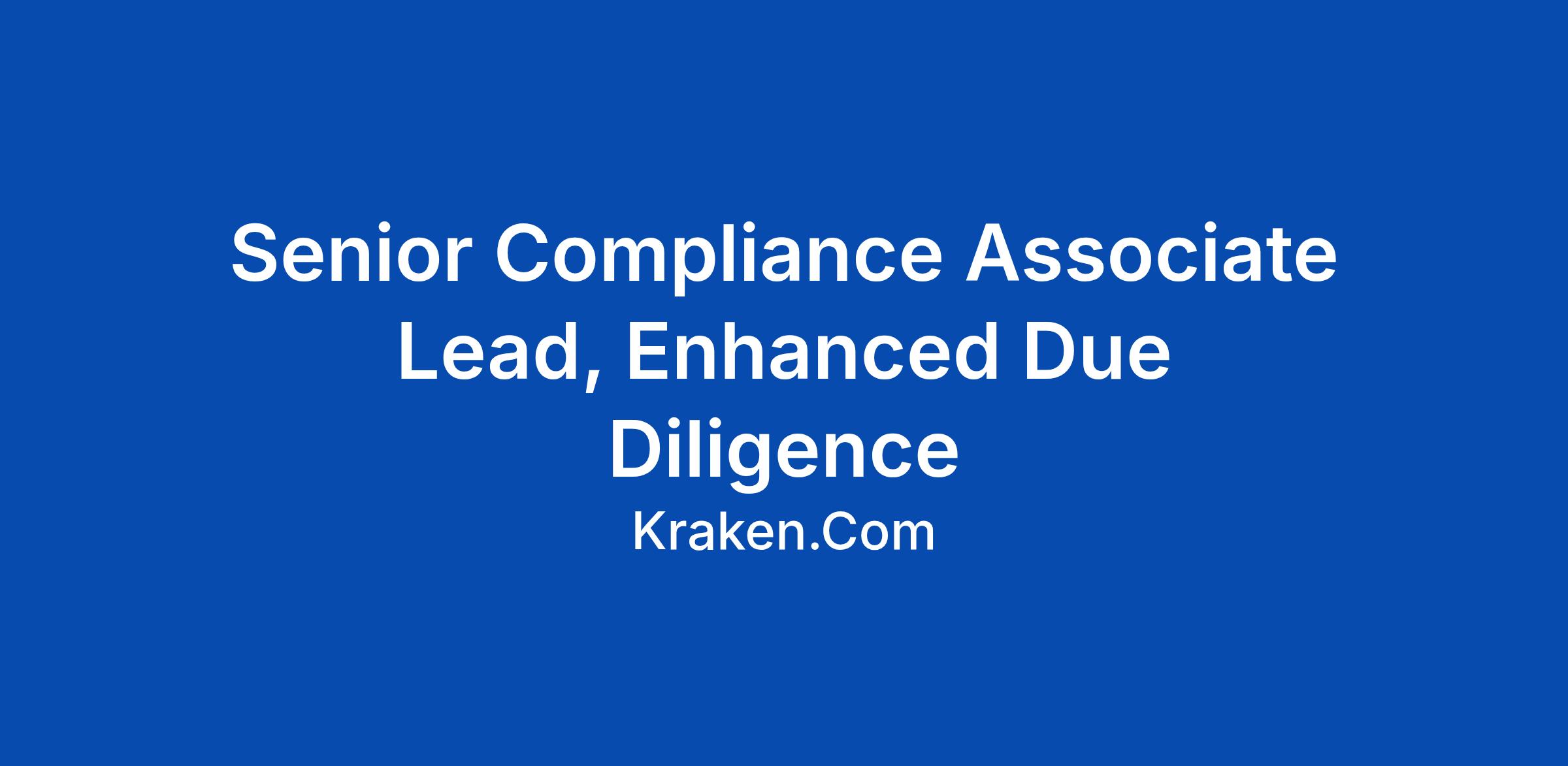 Senior Compliance Associate Lead, Enhanced Due Diligence