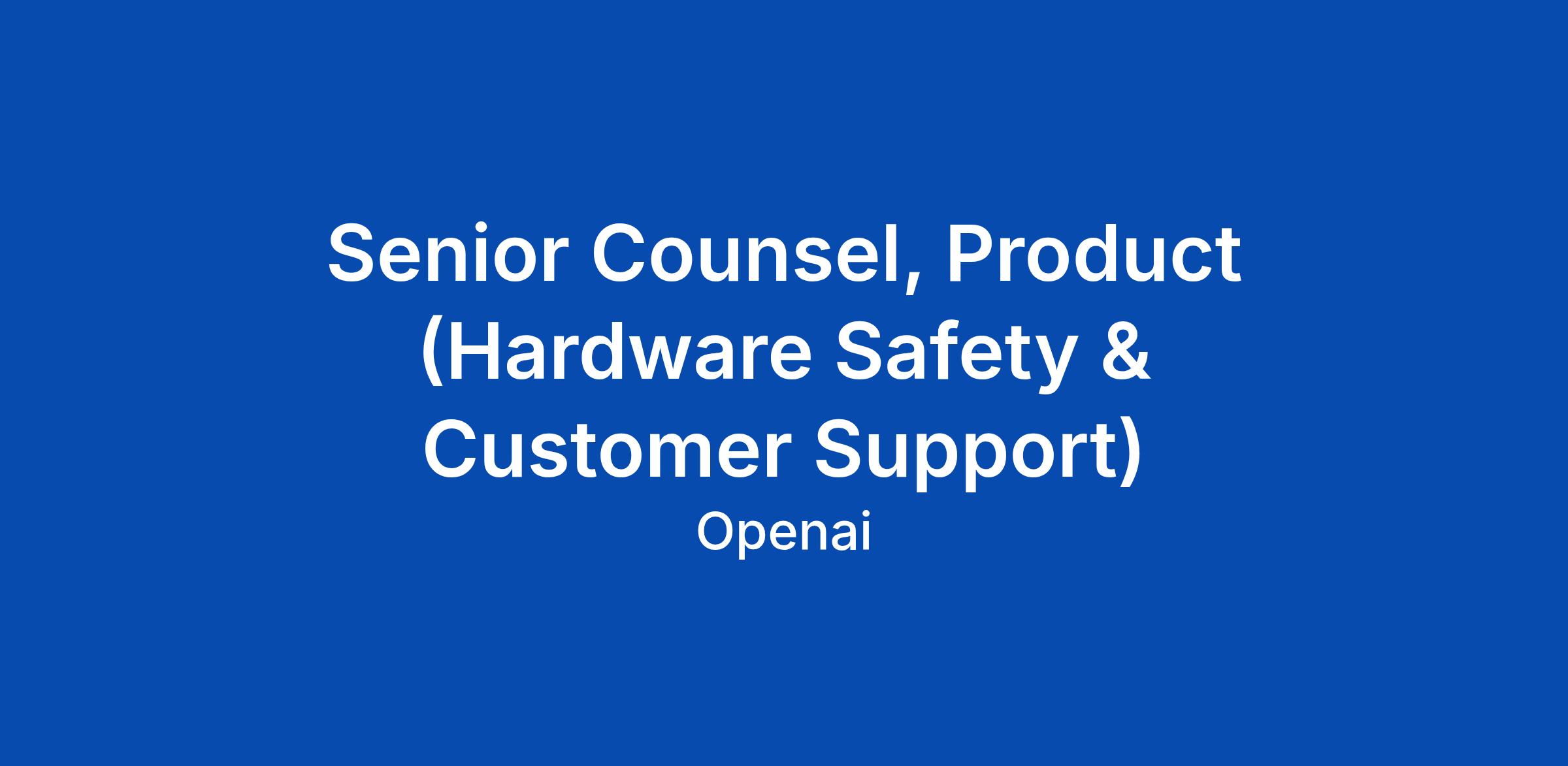 Senior Counsel, Product (Hardware Safety & Customer Support)