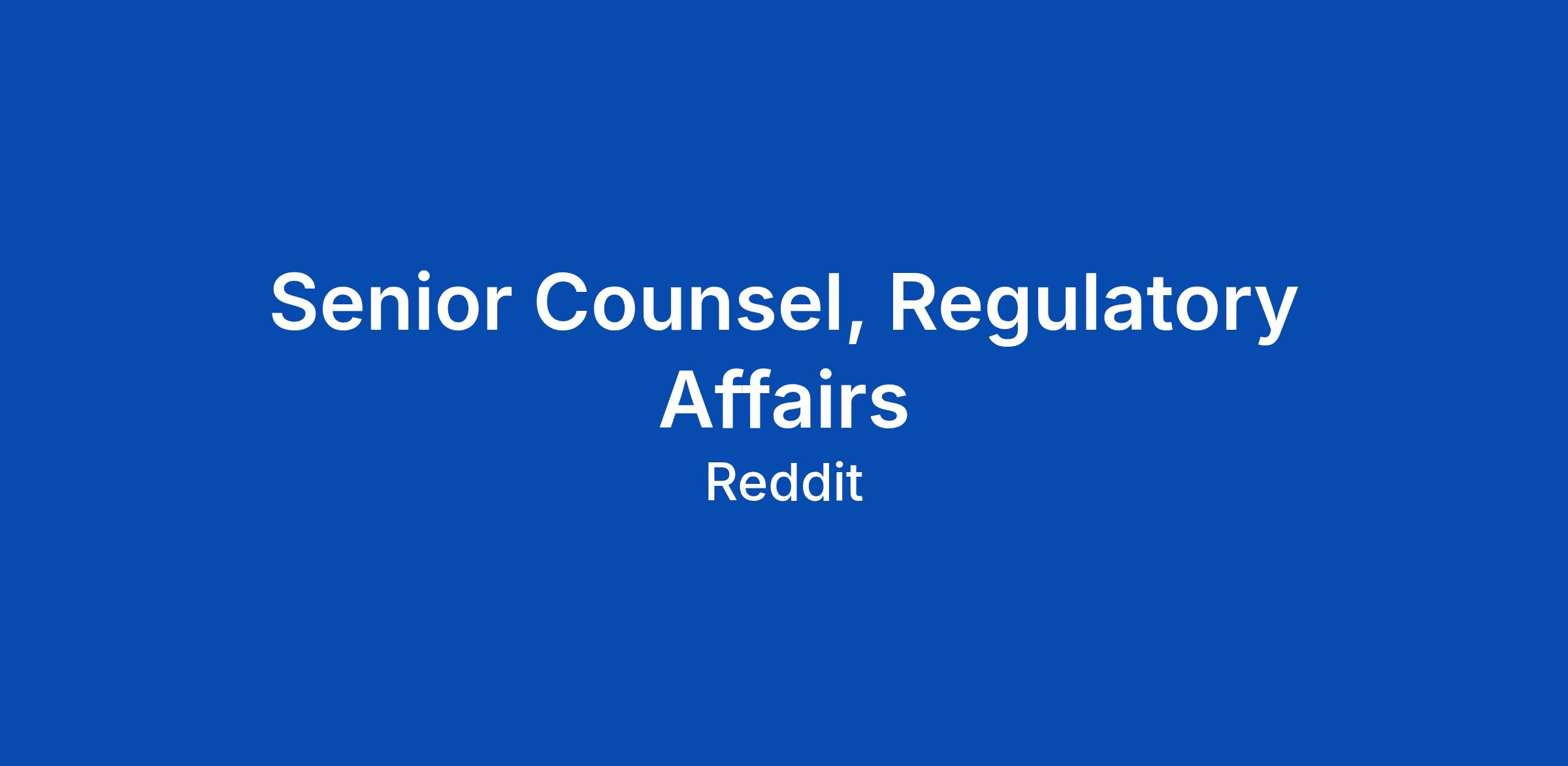 Senior Counsel, Regulatory Affairs