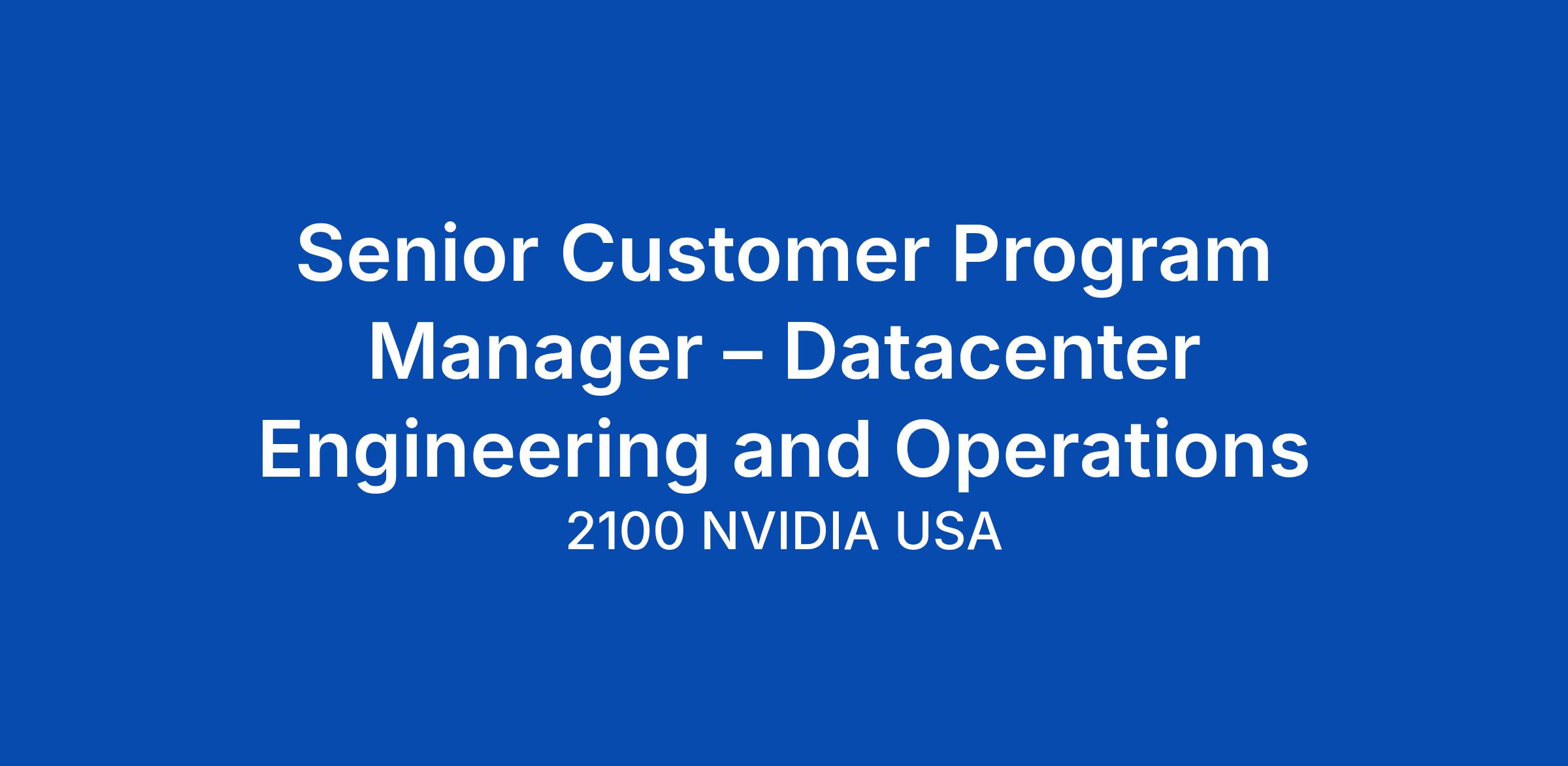 We need innovative and hard-working people to help us reach our goals. We are looking for a Senior Customer Program Manager to join NVIDIA’s Datacenter Engineering & Operations Team. In this critical role, you will be the cross-section between execution and strategy, driving impactful programs and delivering measurable results across many functions of the organization. The ideal candidate will bring strong relationship management expertise, a proven project management foundation, and the ability to thrive in fast-paced environments while ensuring successful outcomes with internal collaborators. This is an opportunity to work on ground breaking technologies while influencing outcomes at scale.