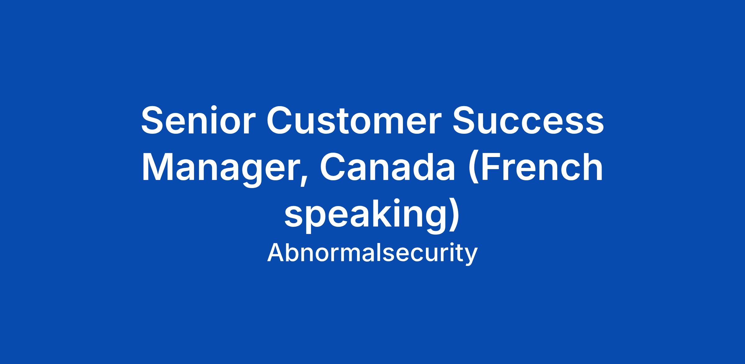 Senior Customer Success Manager, Canada (French speaking)