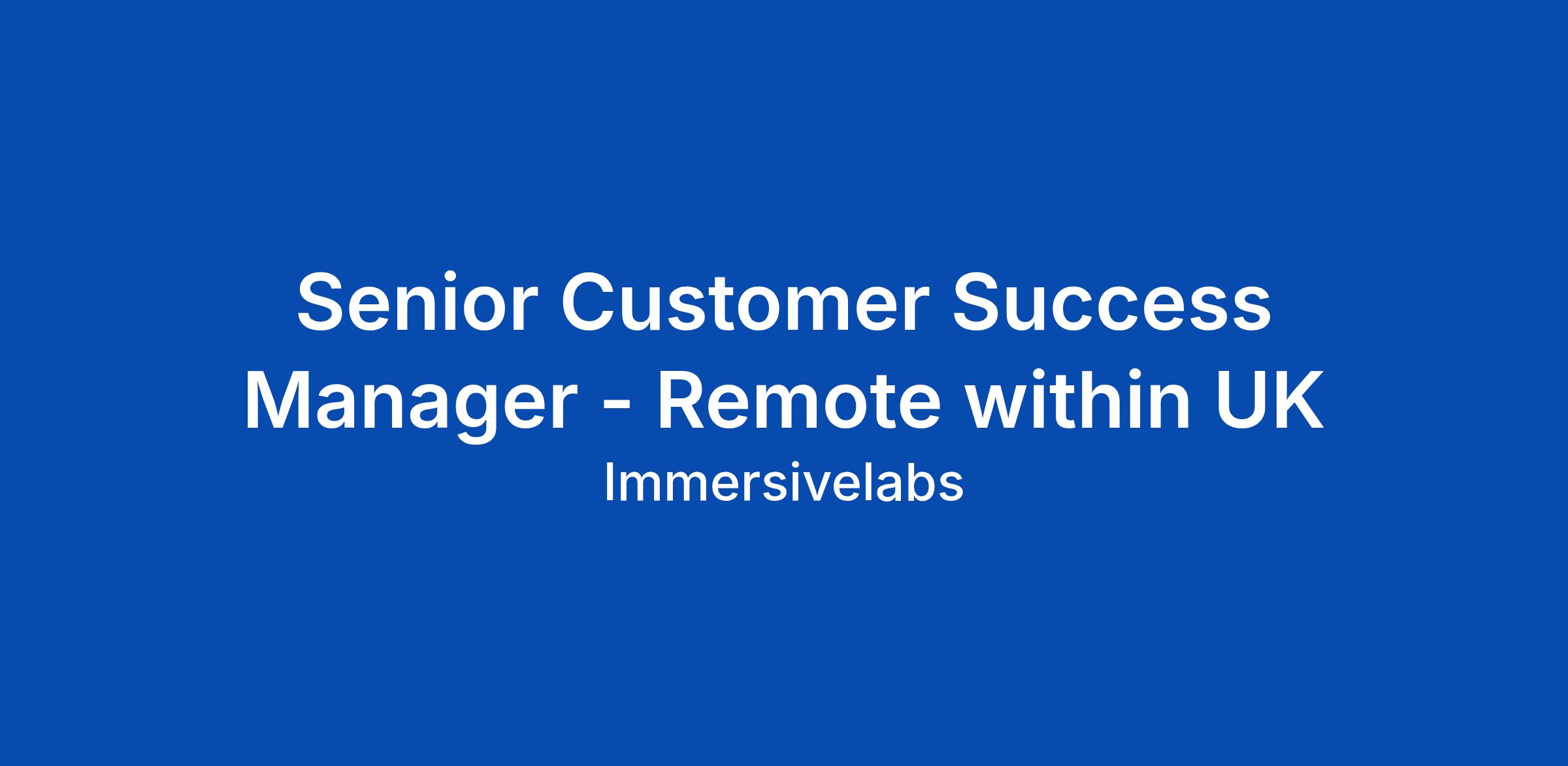 Senior Customer Success Manager - Remote within UK
