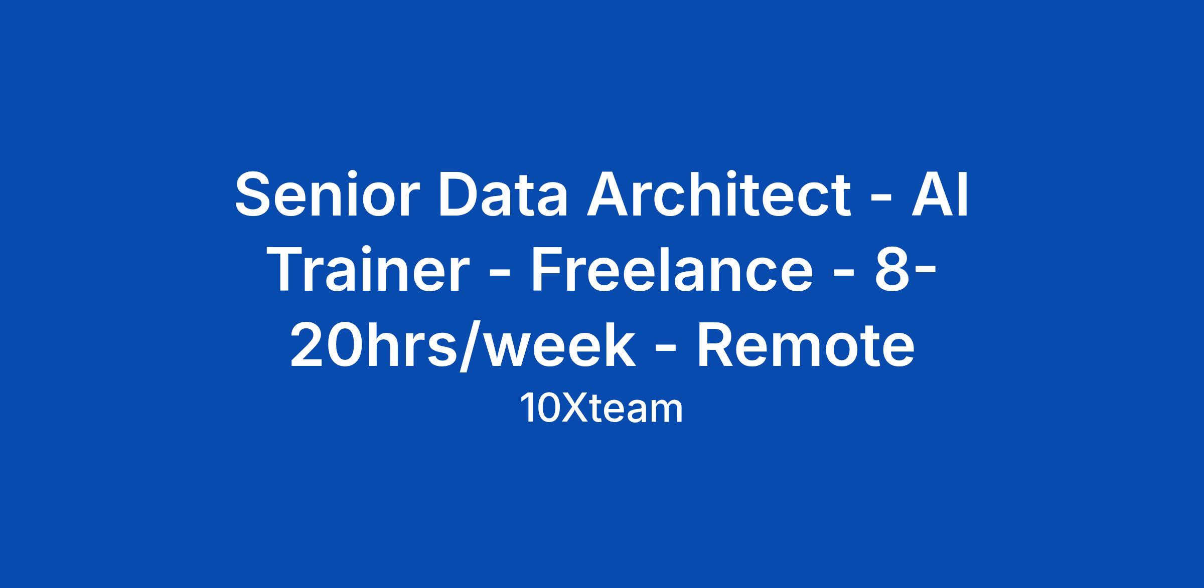Updated: 16 April 2026 Freelance | 8β20 hrs/week | Remote (EU/UK) Are you an experienced data architect who instinctively spots gaps in data architecture reasoning and understands the complex realities of architecting data systems? Do you have 8 to 20 hours per week available alongside your main job or consulting projects? Join us in shaping how AI understands and applies data architecture expertise at scale. About the Role 10x.team connects expert freelancers with leading AI labs building next-generation models. We are looking for knowledgeable data architects based in the EU or UK to enhance the accuracy, depth, and real-world relevance of AI-powered data solutions. What You Will Do - Review and refine AI-generated outputs related to data architecture, system design, integration requirements, and practical aspects of architecting data systems - Evaluate AI responses for architectural soundness, scalability, and compliance with real-world requirements - Draft realistic data architecture scenarios based on your direct professional experience - Create scenario variations from different perspectives (e.g. data architect, business stakeholder, engineer, or client) - Identify gaps, ove