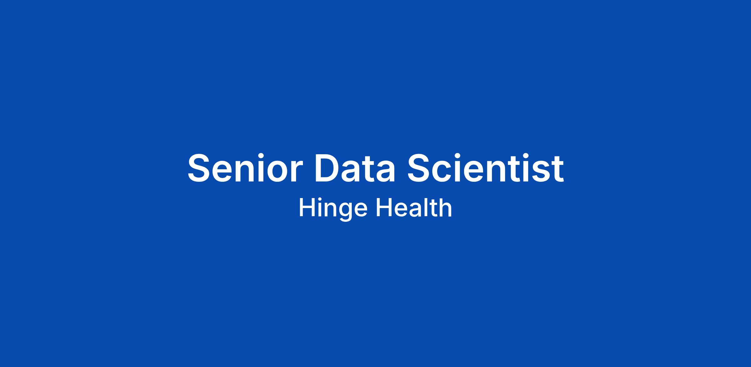 THE OPPORTUNITY Join the team that is proving the value of the new healthcare system. Hinge Health is on a mission to create a patient-centered digital clinic that not only improves clinical outcomes but also drives significant financial savings. As a Senior Data Scientist in the ROI Identification & Measurement Pod, you will sit at the heart of our commercial value proposition. You wonβt just analyze dataβyou will architect the automated engines and predictive models that prove our economic impact to the worldβs largest employers and health plans. If you are passionate about using causal inference and massive datasets to drive company-wide strategy, this is your opportunity to build the "truth engine" of our business. WHAT YOU'LL ACCOMPLISH - In your first 3 months: You will dive into our data foundations, mastering our modern stack (Databricks, dbt, Tuva Project). You will partner with health economists to audit our current claims analysis pipeline and begin designing robust dbt models to clean and normalize raw medical claims into a unified schema. - In your first 6 months: You will ship high-impact predictive models. You will build propensity score matching models to establish