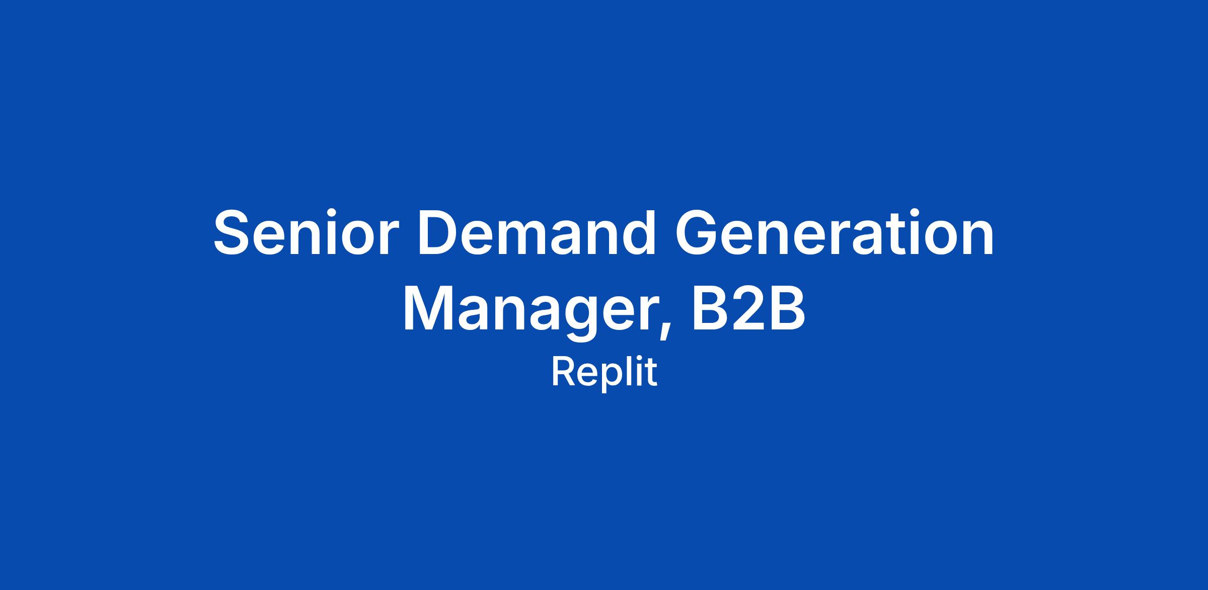 Senior Demand Generation Manager, B2B