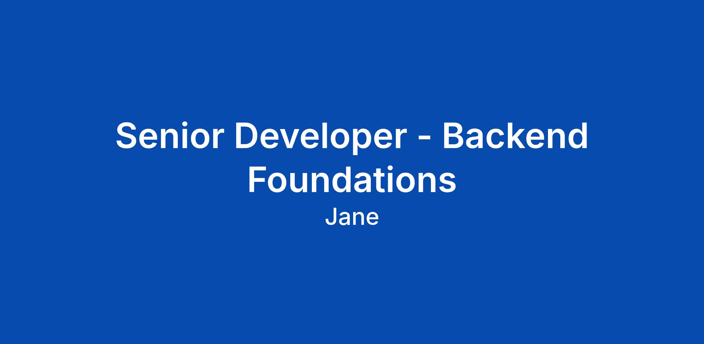 Senior Developer - Backend Foundations
