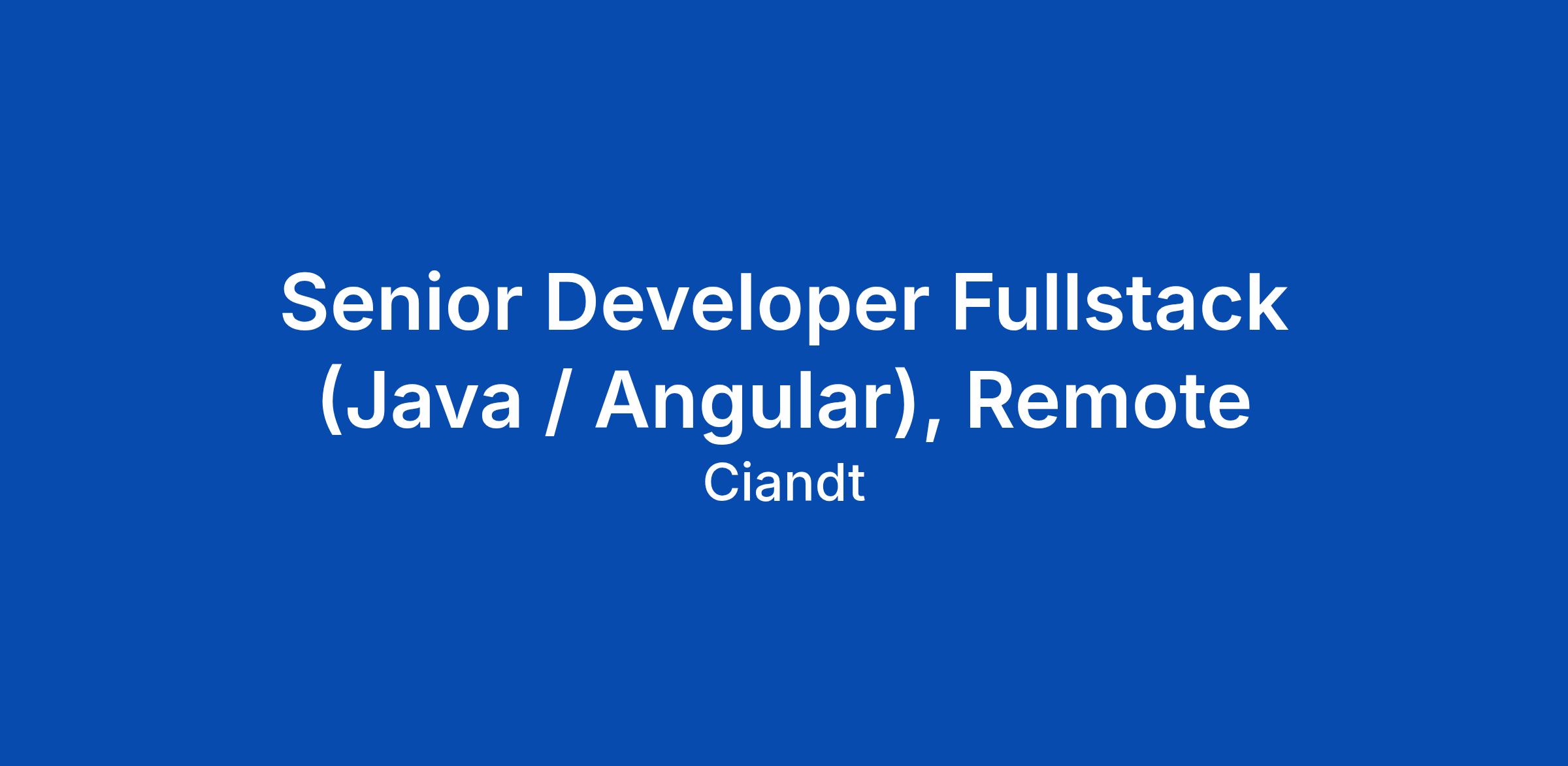 Senior Developer Fullstack (Java / Angular), Remote