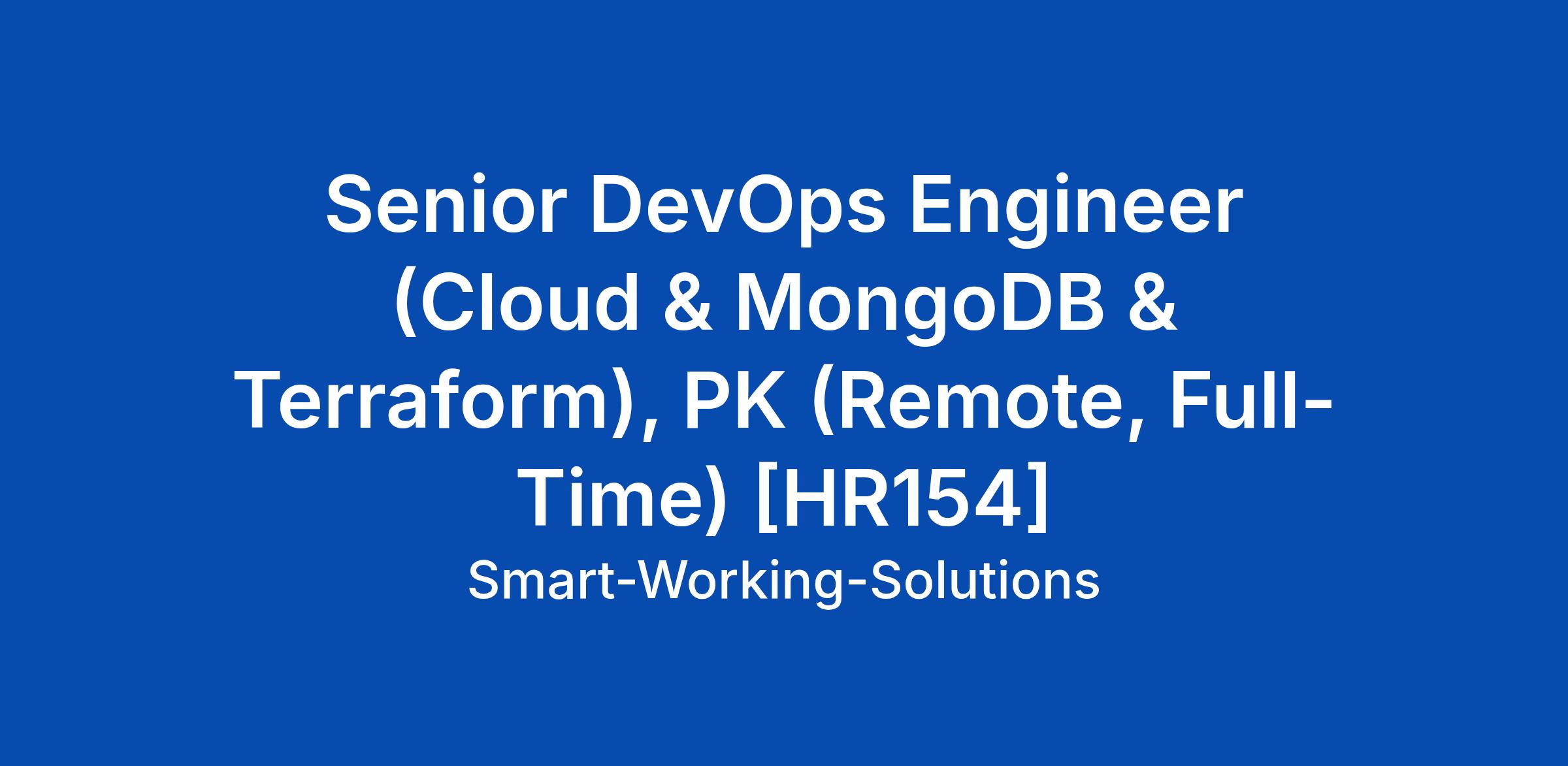 Senior DevOps Engineer (Cloud & MongoDB & Terraform), PK (Remote, Full-Time) [HR154]