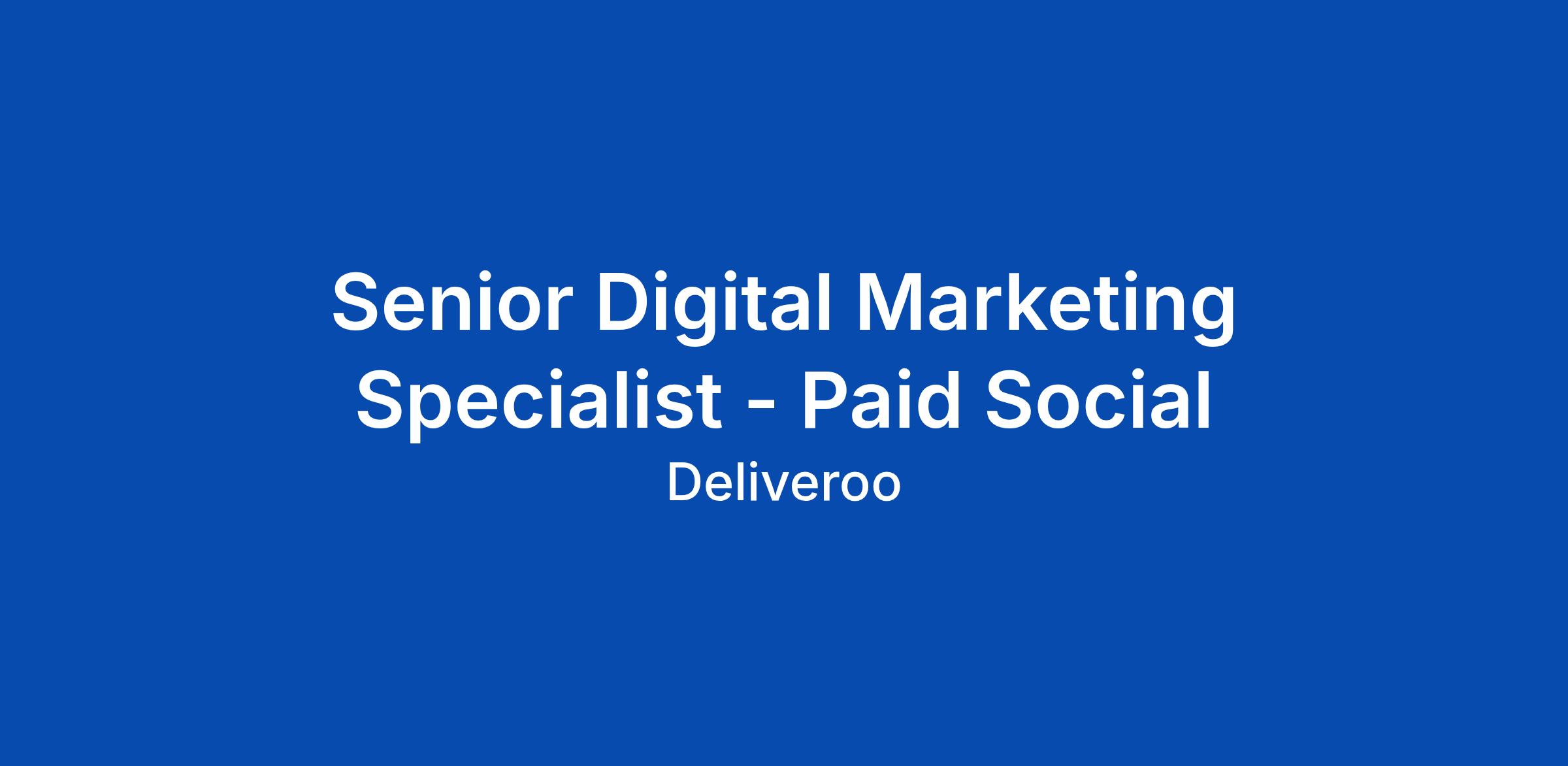 Senior Digital Marketing Specialist - Paid Social