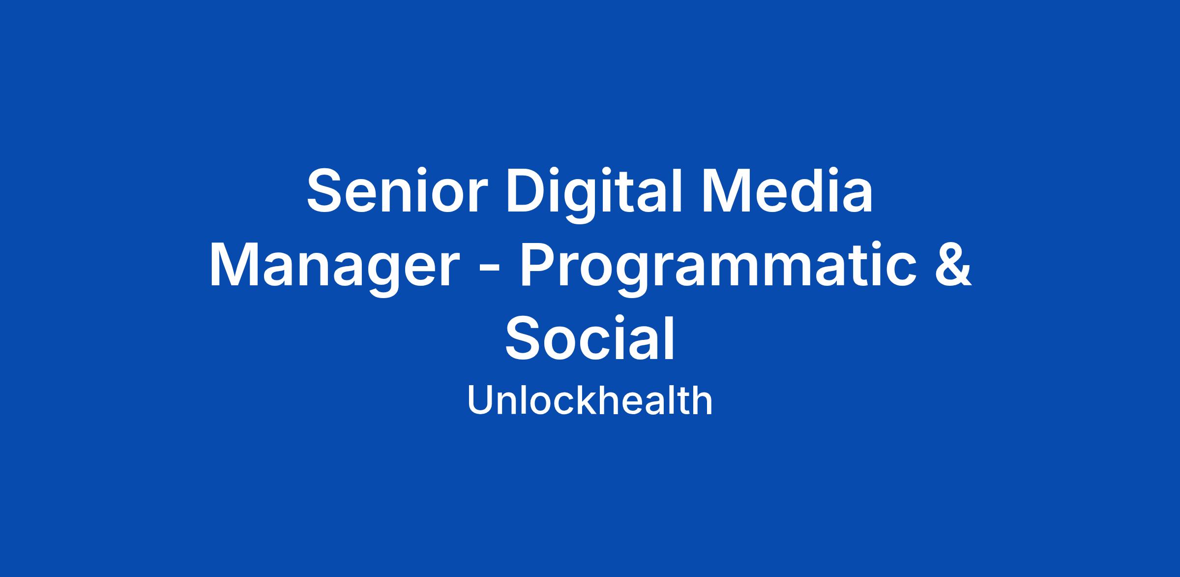 The Senior Digital Media Manager is a core member of the Unlock Health media team, playing a critical role within an integrated media team and influencing the development and management of clientsβ paid digital media. This role is accountable for the day-to-day ownership of Programmatic and Social campaigns, responsible for campaign setup, management, optimization, billing reconciliation, and reporting while ensuring performance and operational excellence. Beyond execution, this role demands advanced storytelling and presentation skills, the ability to independently manage accounts, lead complex projects, and mentor junior team members. A successful candidate will champion innovation, foster team development, and consistently deliver high-quality results for clients.