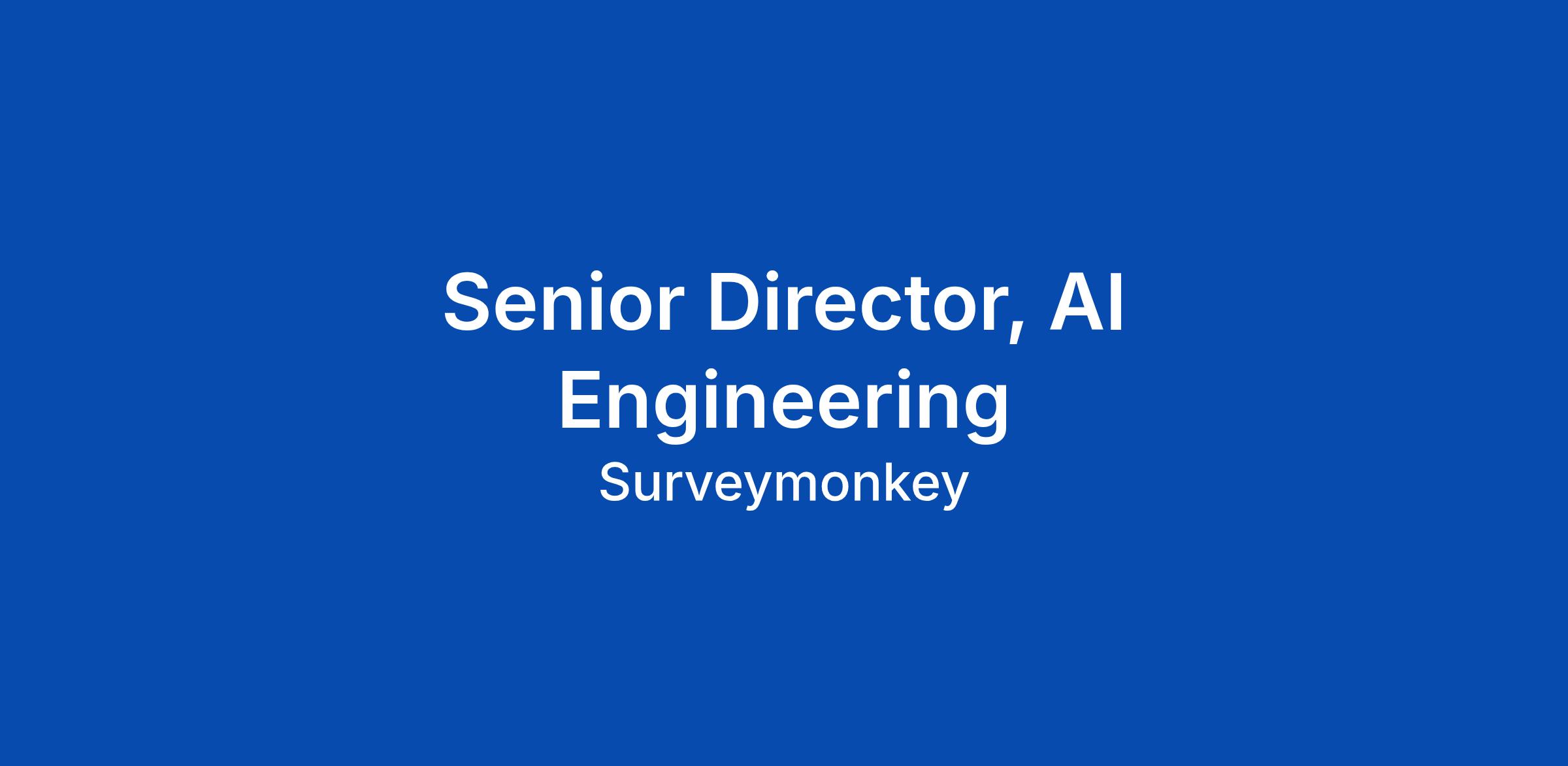 This is a highly visible, strategic, and impactful role, reporting the VP of Engineering for SurveyMonkey Core Engineering. As the Senior Director of AI, you will be a critical leader in defining the future of SurveyMonkey's products and... Click Apply to read the full job description.