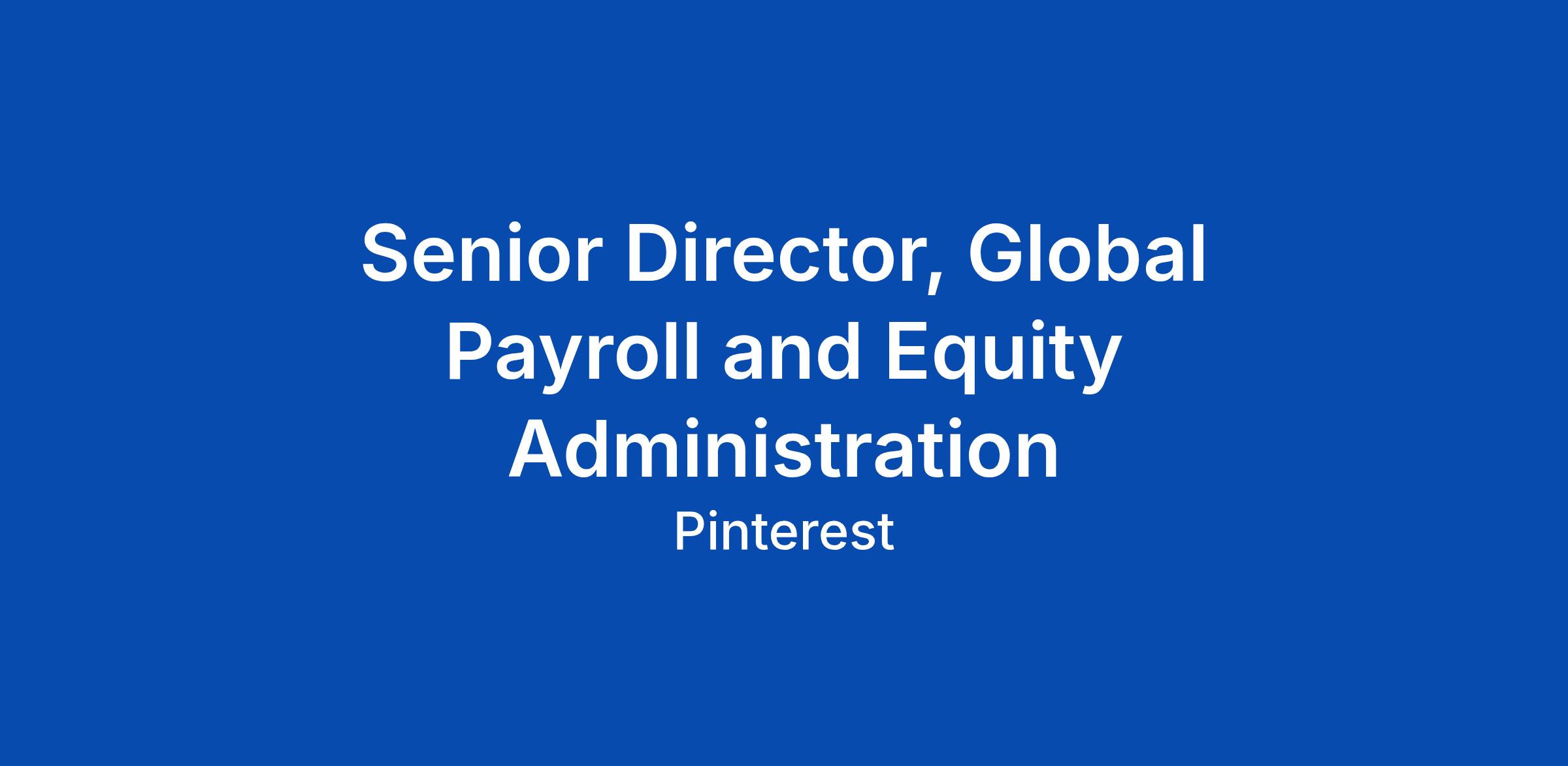 Senior Director, Global Payroll and Equity Administration