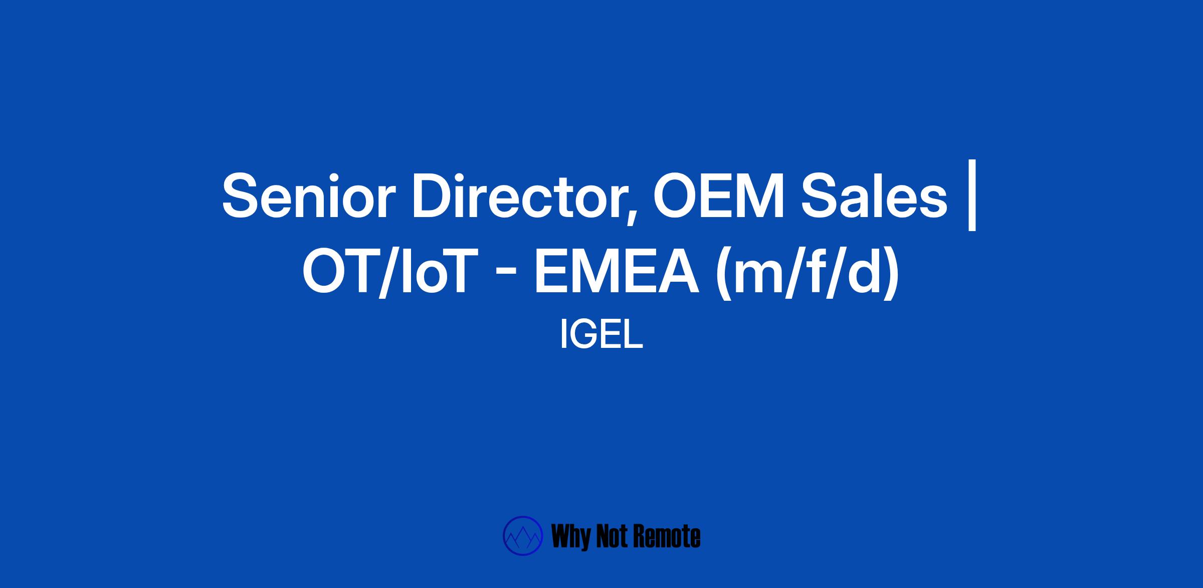 The Senior Director, OEM Sales | OT/IoT (m/f/d) is an individual contributor role responsible for driving IGEL’s sales strategy, execution, and growth of OT (operational technology) and IoT (Internet of Things) solutions, while focusing on targeted OEMs. This role requires a dynamic sales leader with deep technical knowledge of how to integrate IGEL applications into customer architectures. Our role also requires knowledge of the OT/IoT landscape and a deep understanding of OT integration. The incumbent should know how to expertly build sales pipelines and have the ability to foster strong client relationships. The position involves collaborating with cross-functional teams to ensure IoT solutions are well-positioned in the market and align with customer needs. The role will focus on achieving revenue targets, expanding market share, and establishing the company as a leader in IoT solutions.