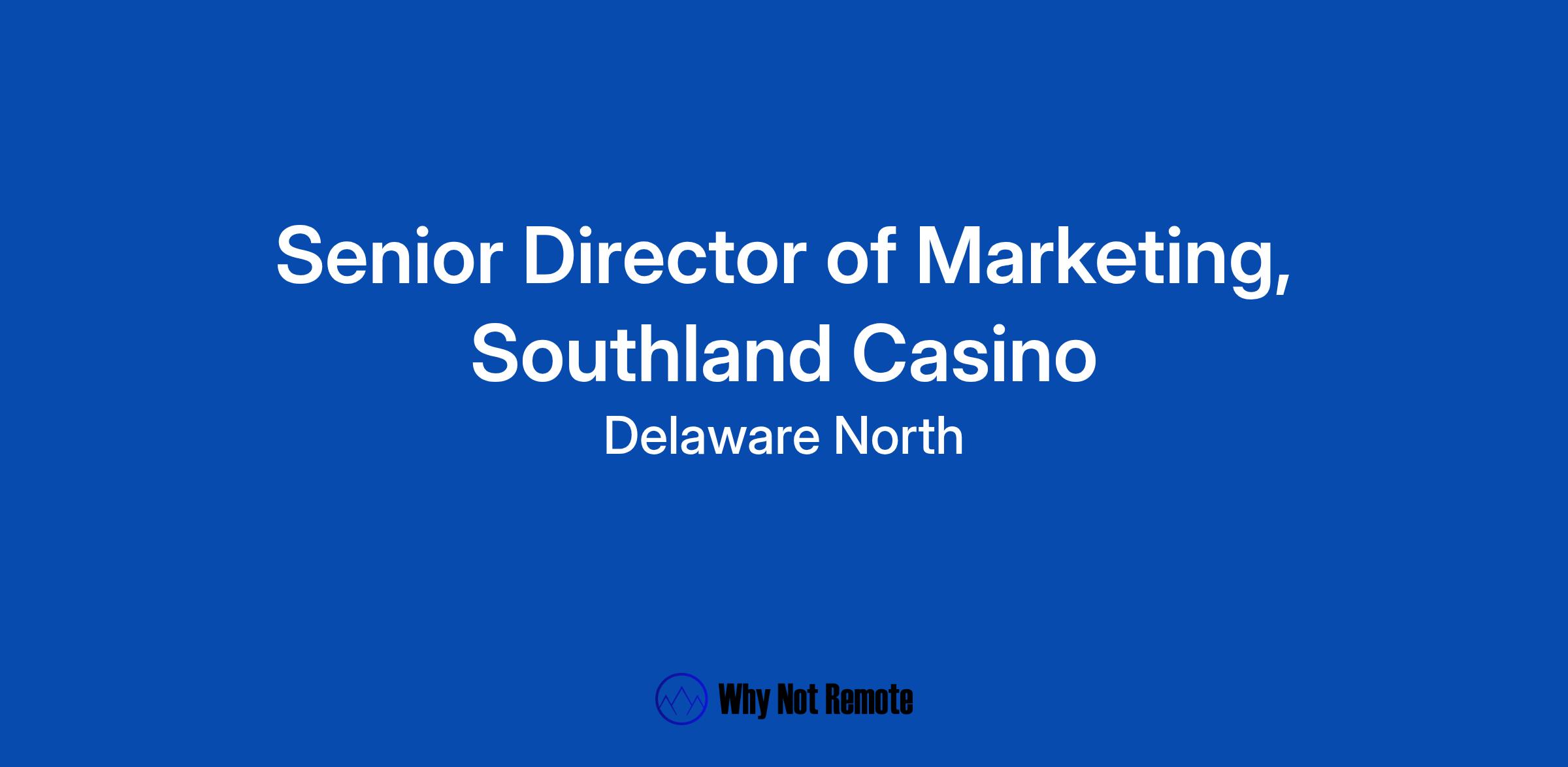 Delaware North Gaming is hiring a Senior Director of Marketing to join our team at Southland Casino in West Memphis, Arkansas. As Senior Director of Marketing, you will be responsible for leading, directing, and managing all marketing, Players Club Reward Center, and group sales operations for our video lottery operations at Southland Casino. If you are a leader dedicated to service excellence and seek a culture of bringing company values to life, apply today.