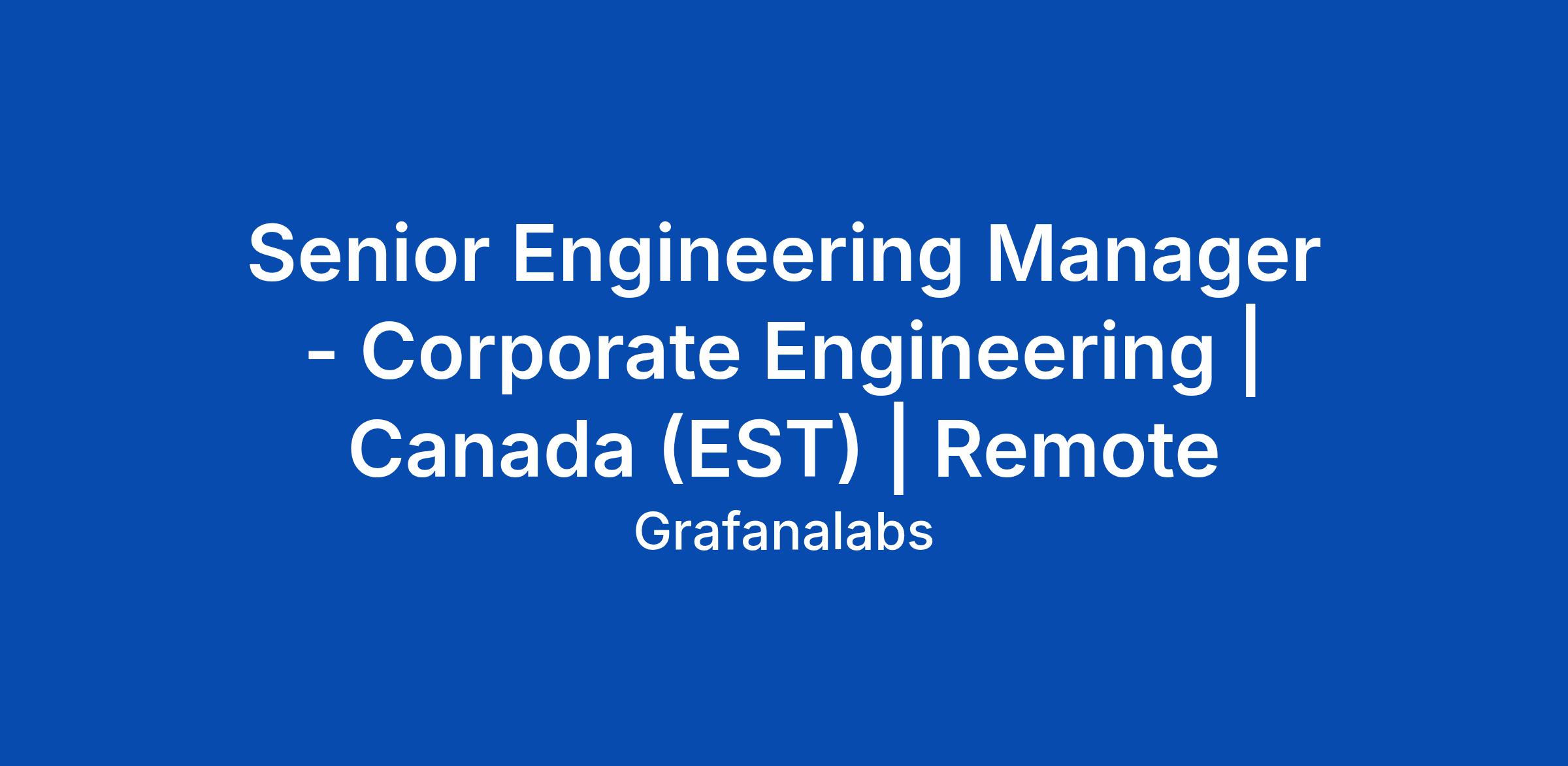 Senior Engineering Manager - Corporate Engineering | Canada (EST) | Remote