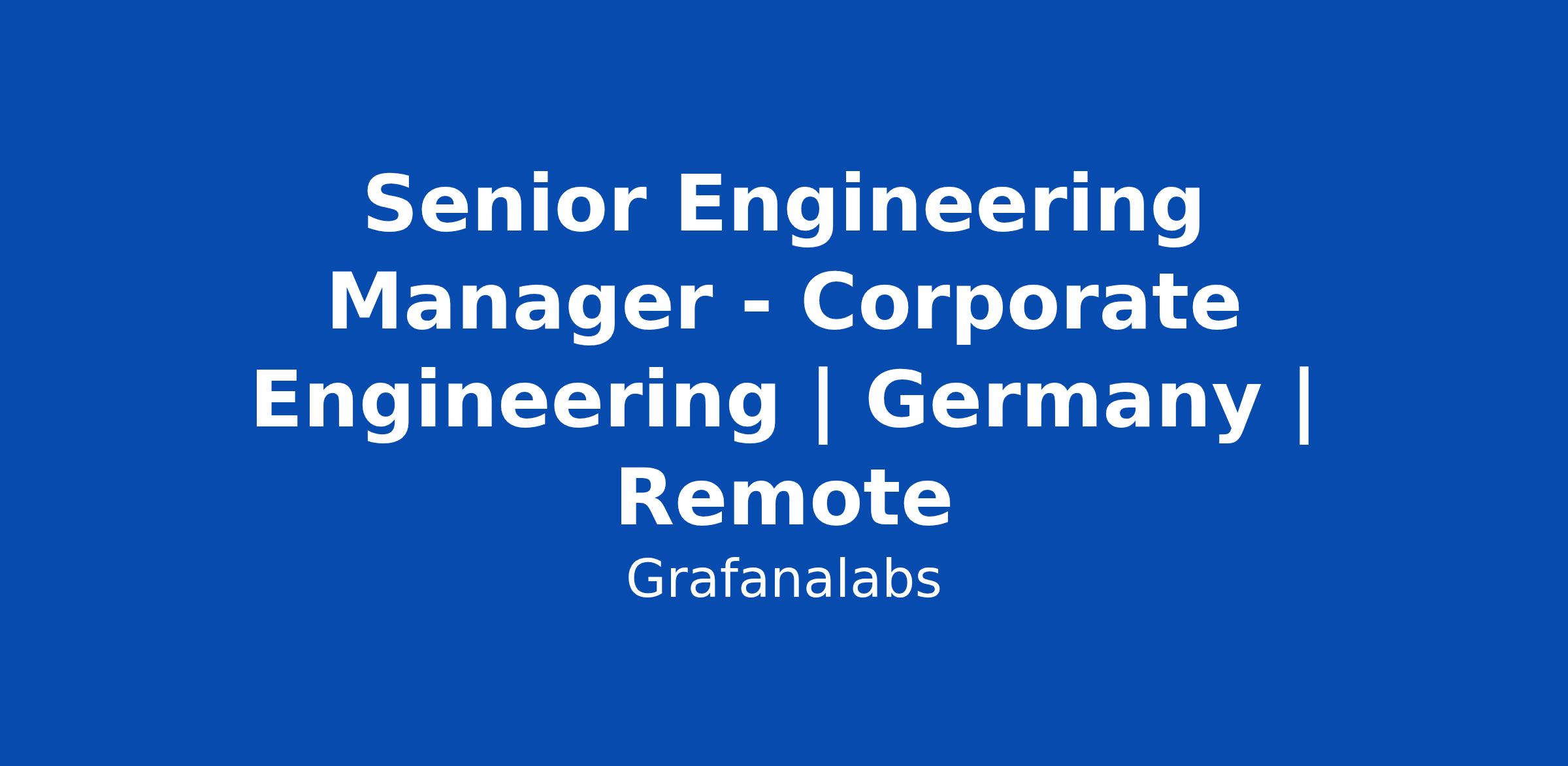 Senior Engineering Manager - Corporate Engineering | Germany | Remote