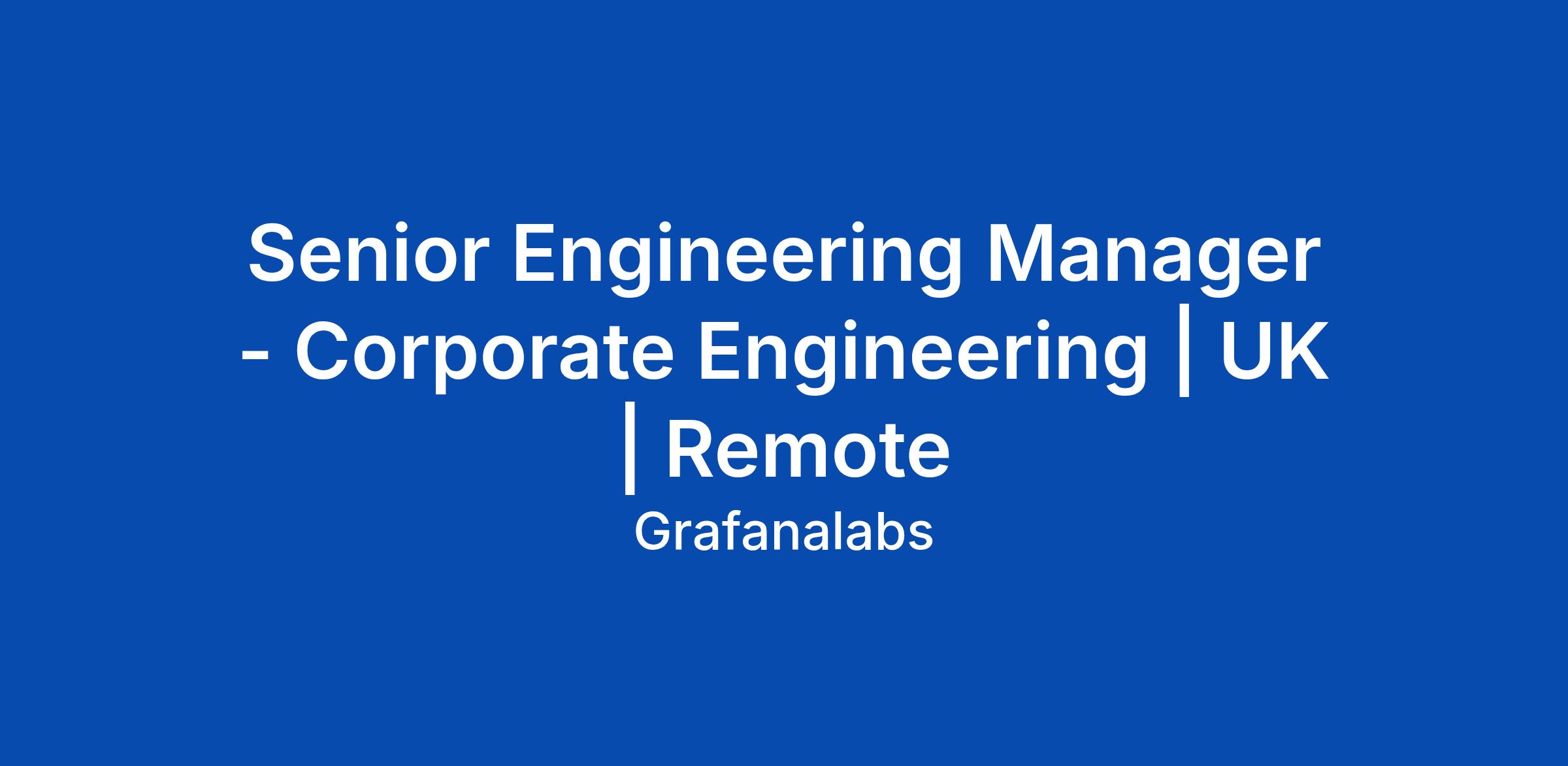 Senior Engineering Manager - Corporate Engineering | UK | Remote