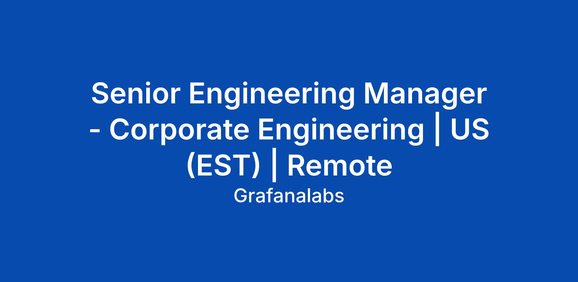 Senior Engineering Manager - Corporate Engineering | US (EST) | Remote
