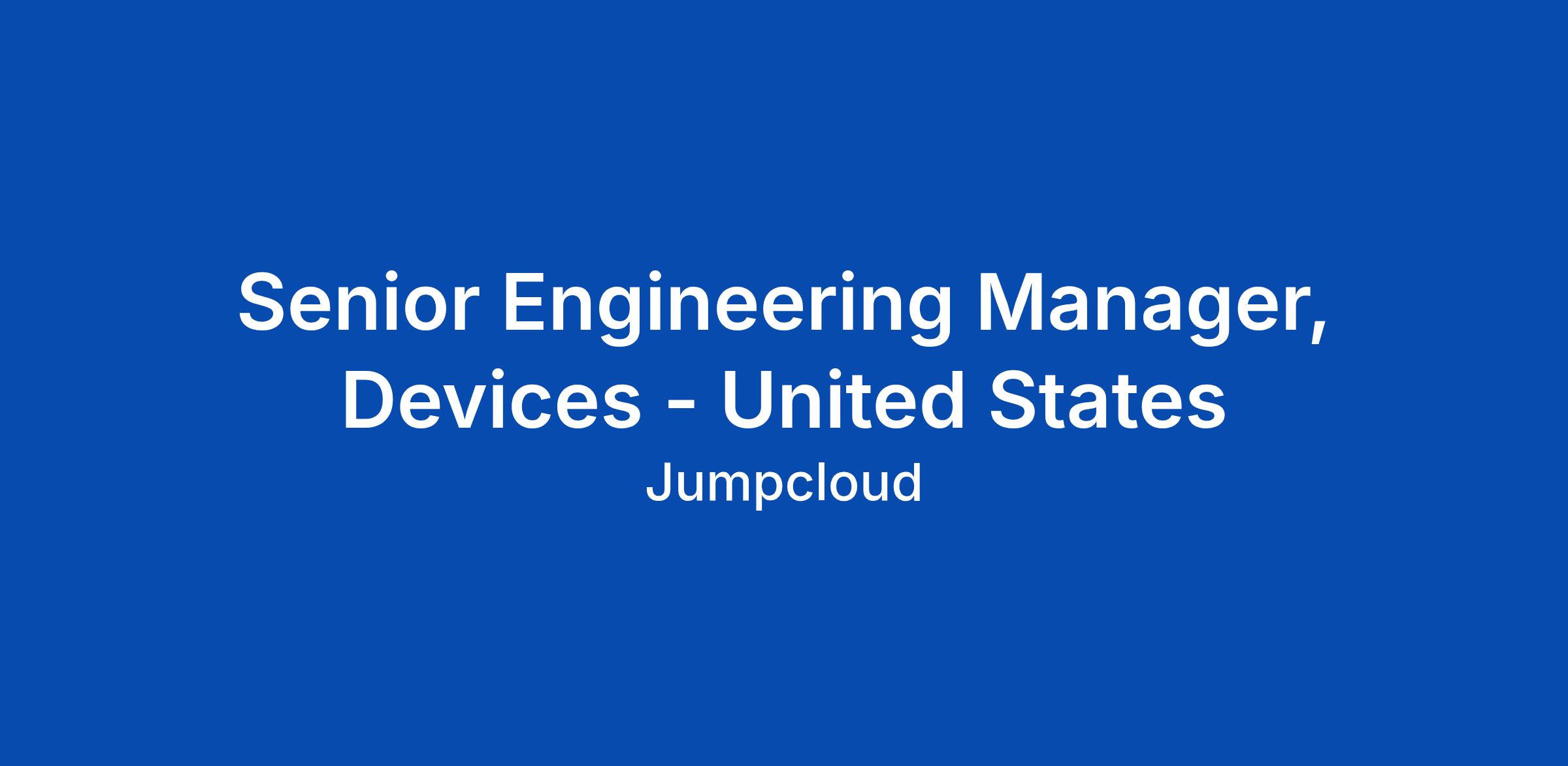 All roles at JumpCloud® are Remote unless otherwise specified in the Job Description. About JumpCloud® JumpCloud® is the AI-powered unified IT management platform designed to secure the modern workforce. By consolidating identity, device, and access management, JumpCloud provides intelligent, secure IT that scales from human users to autonomous AI agents. We help organizations around the globe eliminate complexity and turn AI risk into an optimized advantage, ensuring the right people and agents have secure access to the right resources at all times. JumpCloud is Intelligent, Secure IT. About the Role As a Senior Engineering Manager for Devices, you won't just manage teams, you will be a primary architect of our engineering culture. You will lead a critical sub-organization responsible for the backbone of our device management platform. We are looking for a leader who possesses deep technical intuition, a passion for operational excellence, and the ability to mentor high-level talent while partnering with executive leadership to define the future of our product. You will be responsible to build out features, help drive architecture, define best practices and enable product quality.... Click Apply to read the full job description.