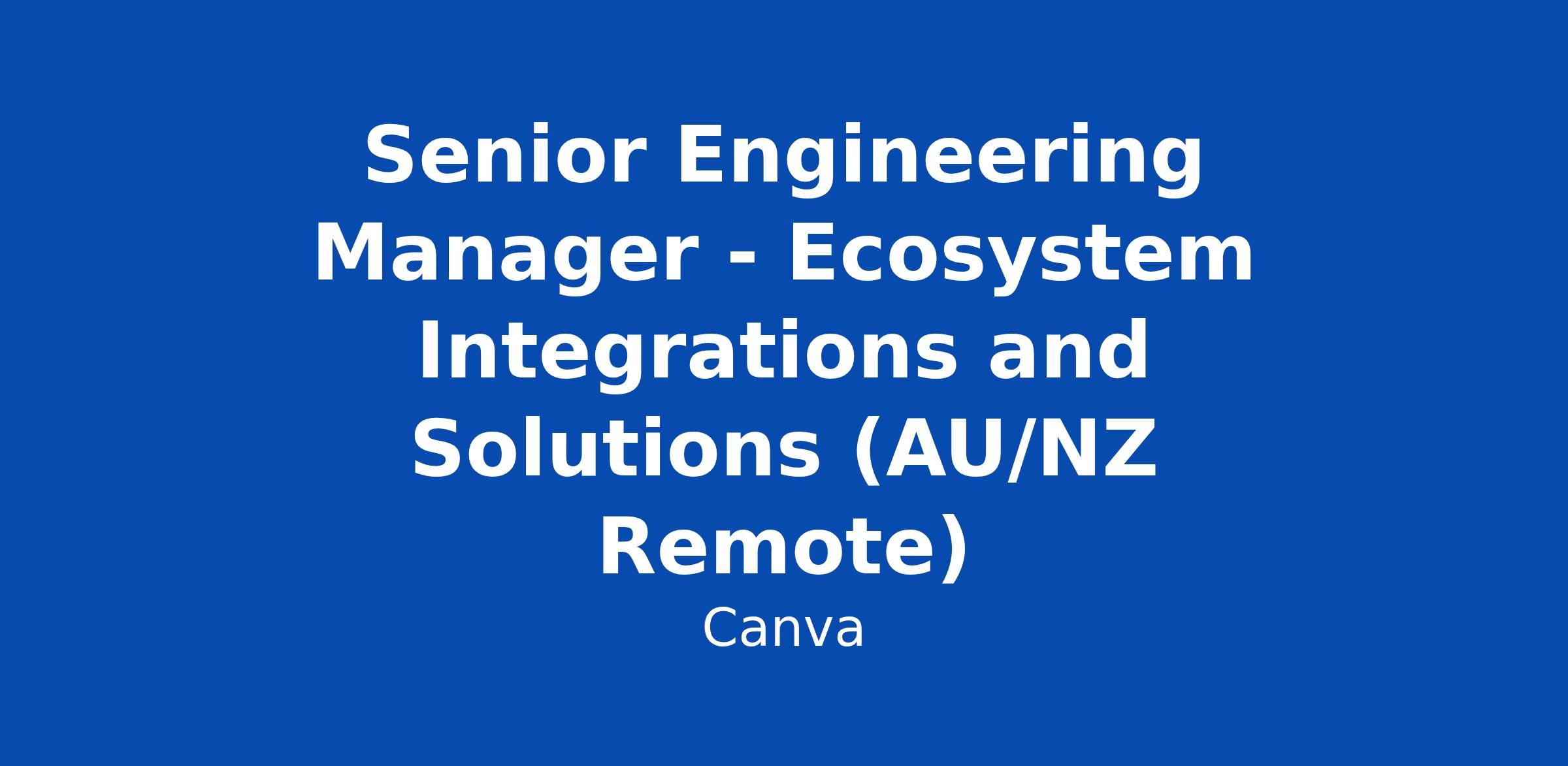 Senior Engineering Manager - Ecosystem Integrations and Solutions (AU/NZ Remote)