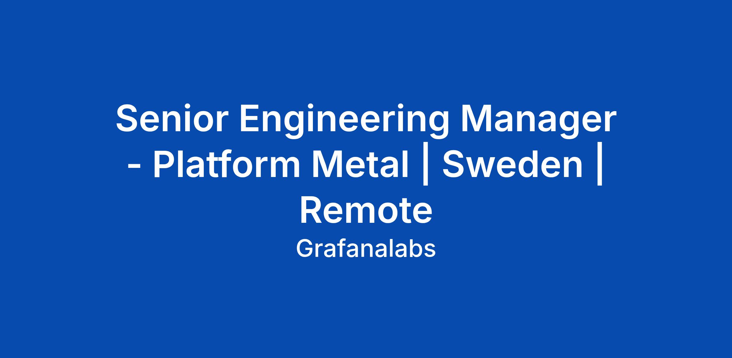 Senior Engineering Manager - Platform Metal | Sweden | Remote