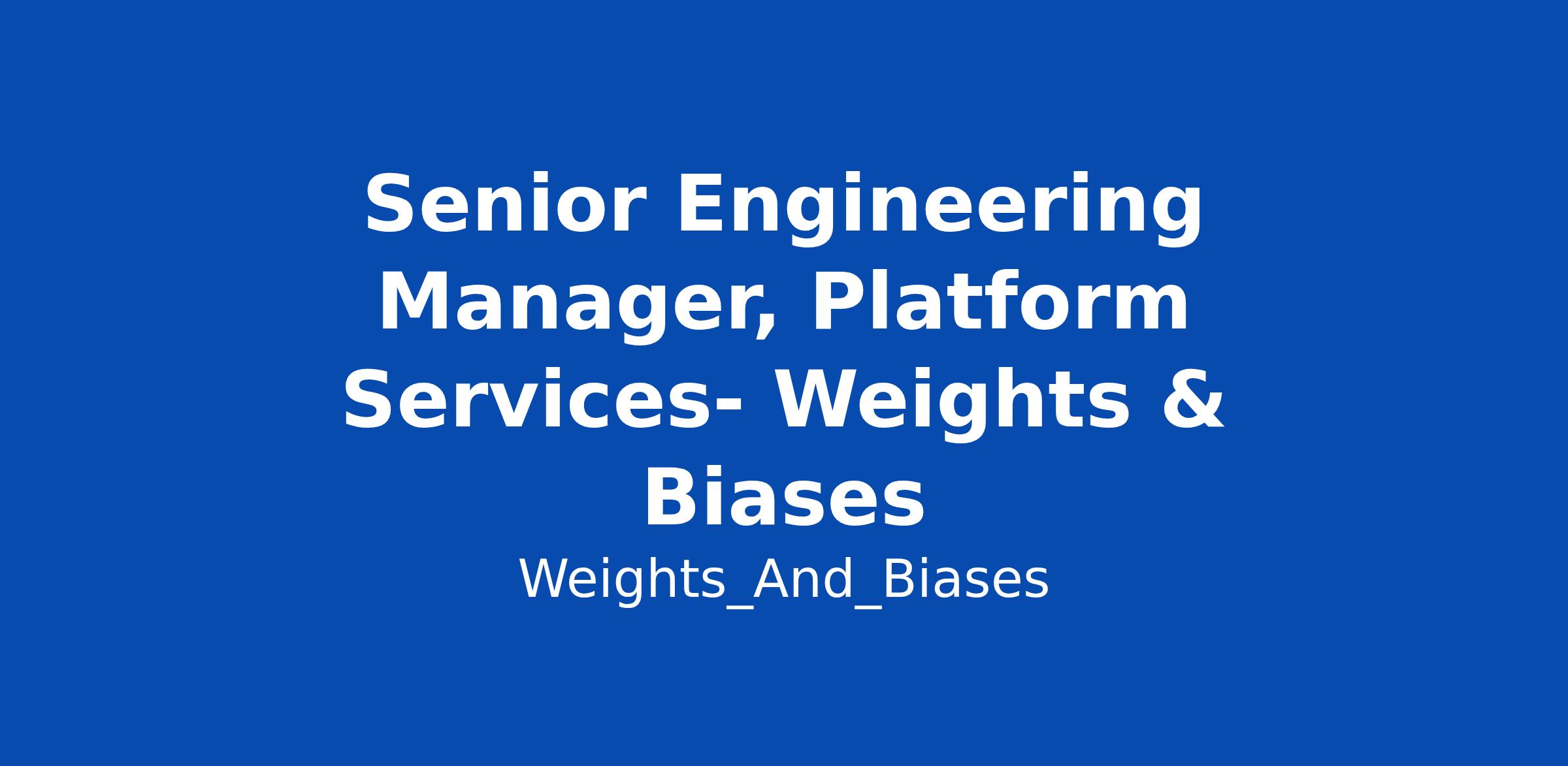 Senior Engineering Manager, Platform Services- Weights & Biases