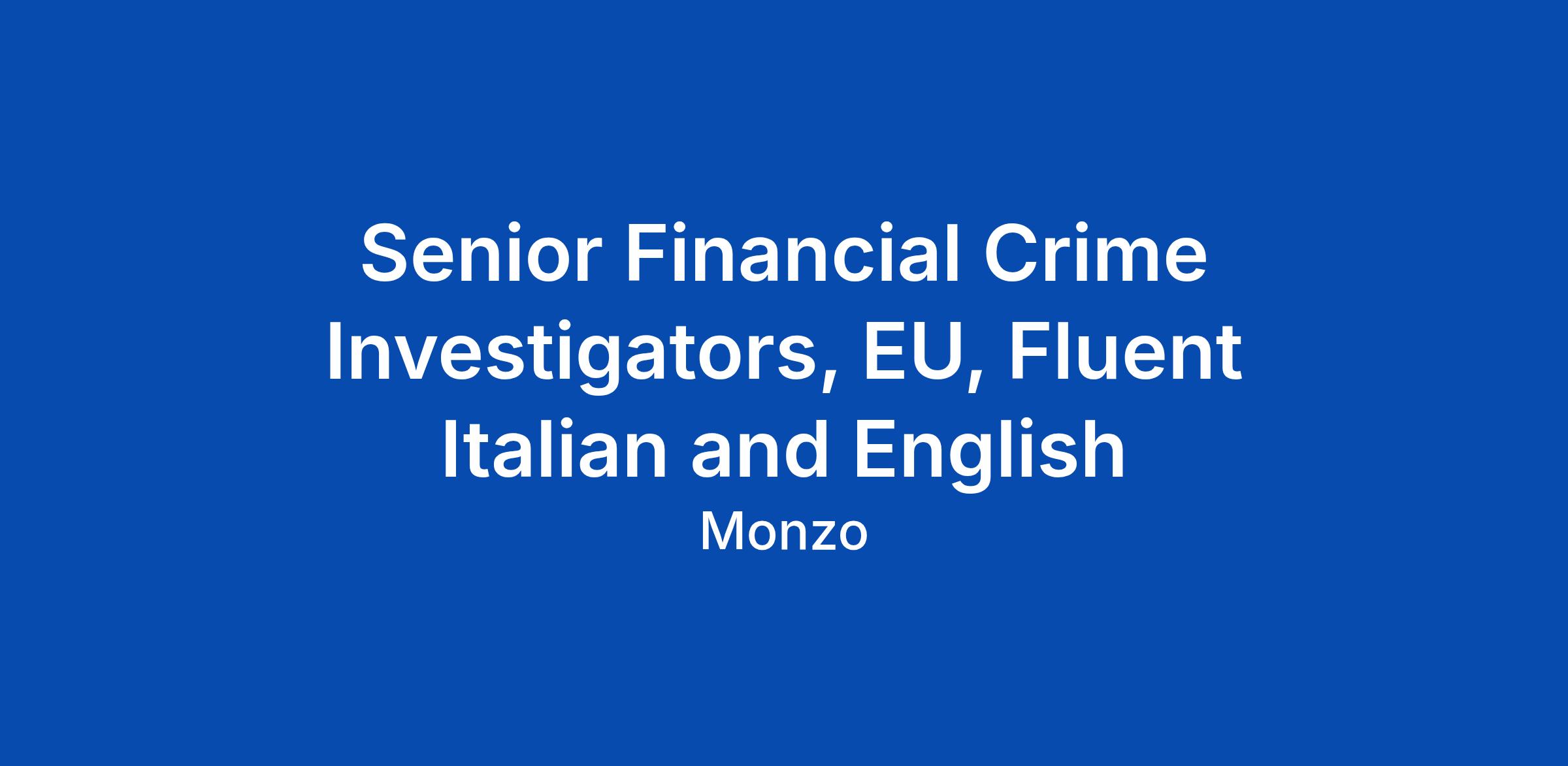 Senior Financial Crime Investigators, EU, Fluent Italian and English