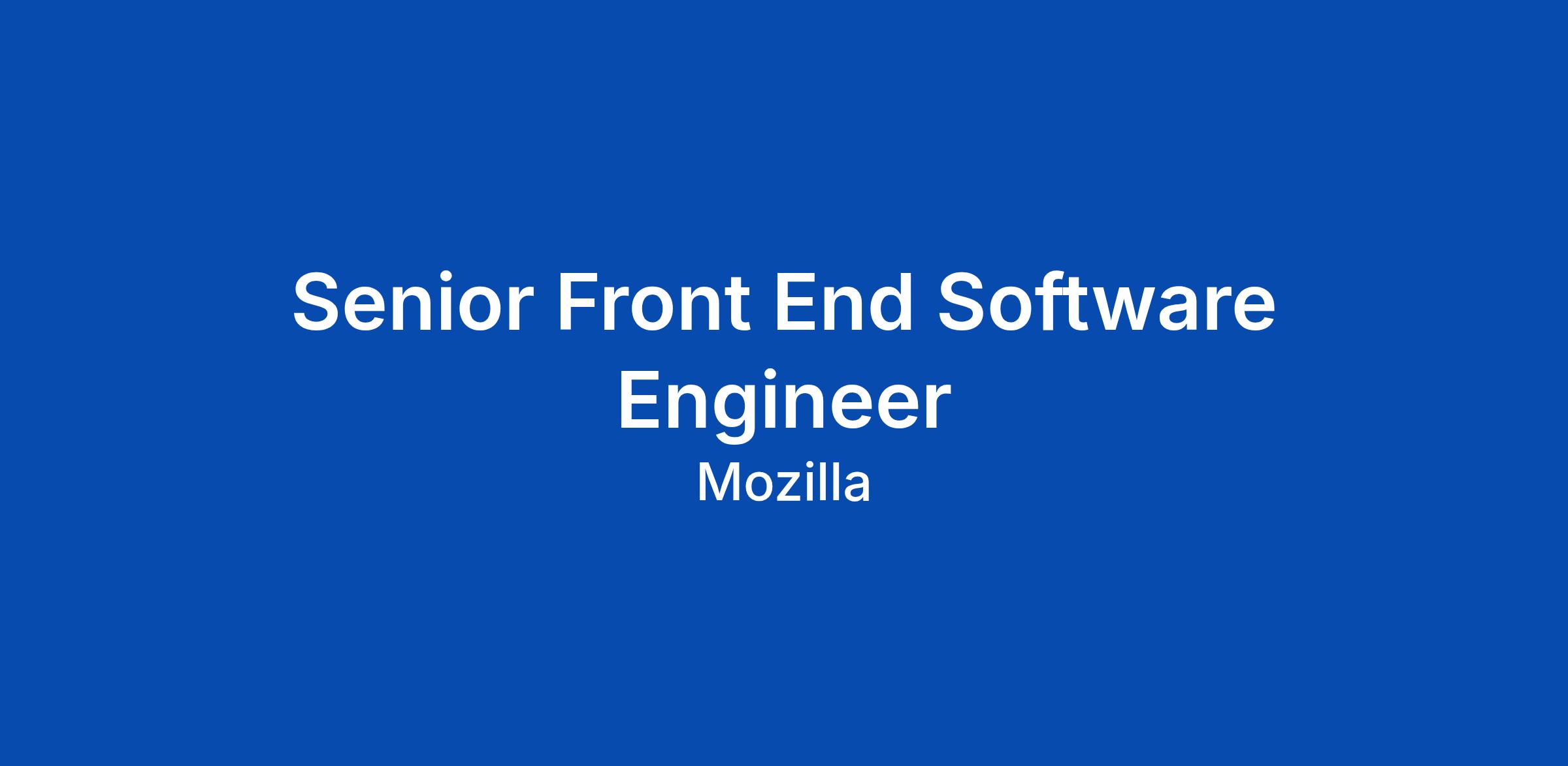 Senior Front End Software Engineer