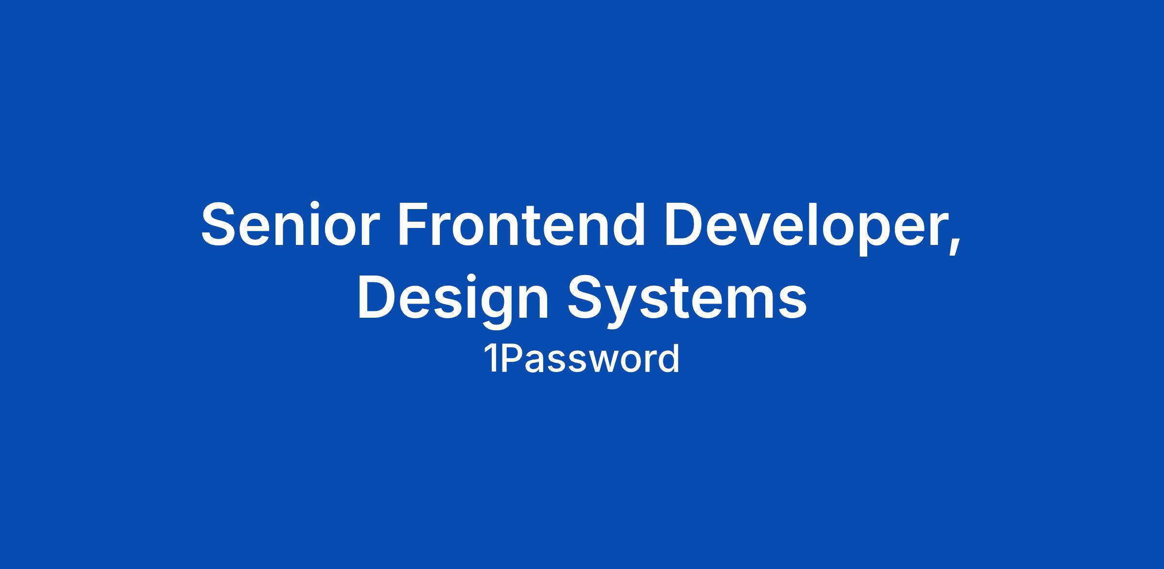 Senior Frontend Developer, Design Systems