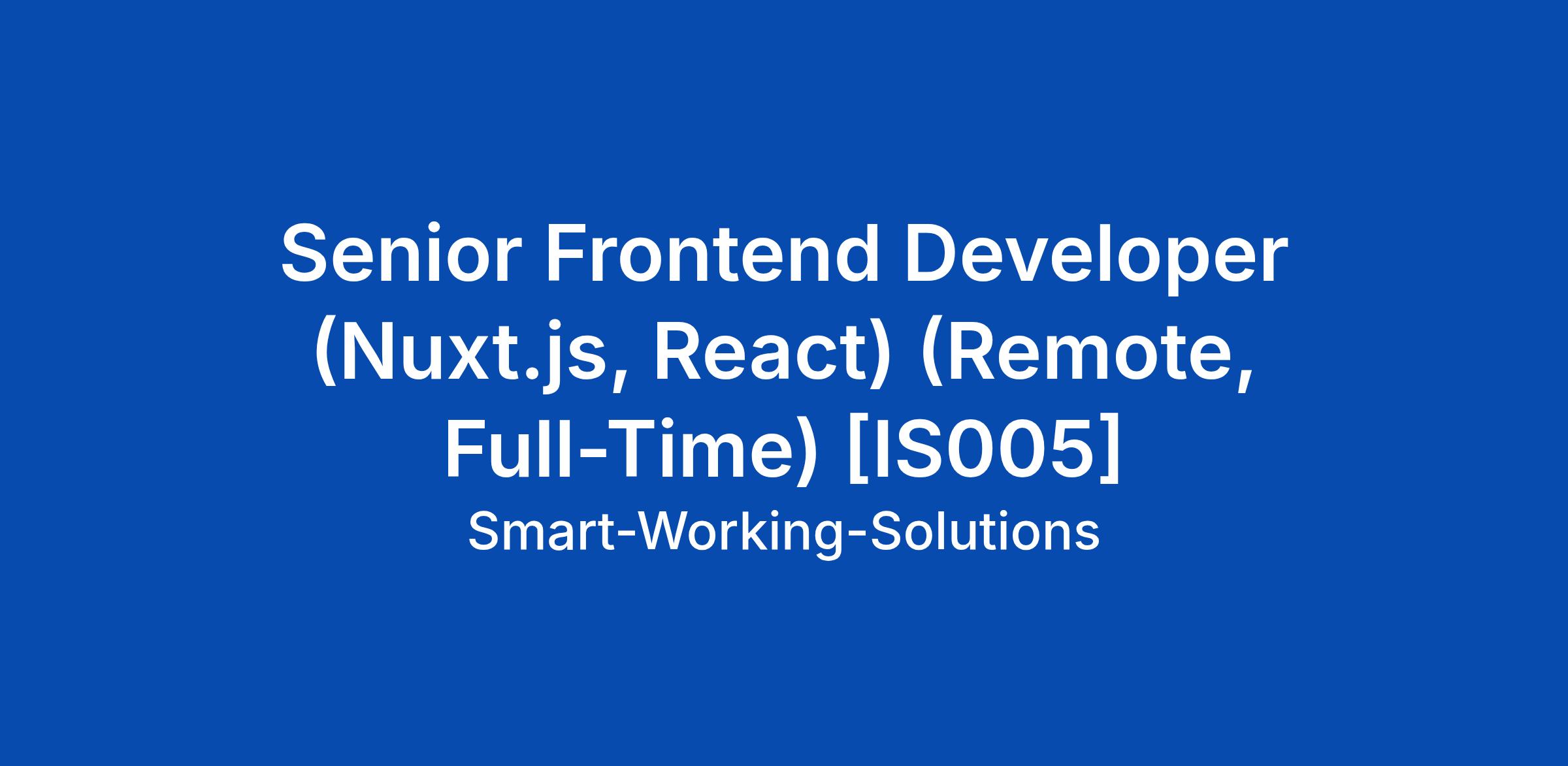 Senior Frontend Developer (Nuxt.js, React) (Remote, Full-Time) [IS005]