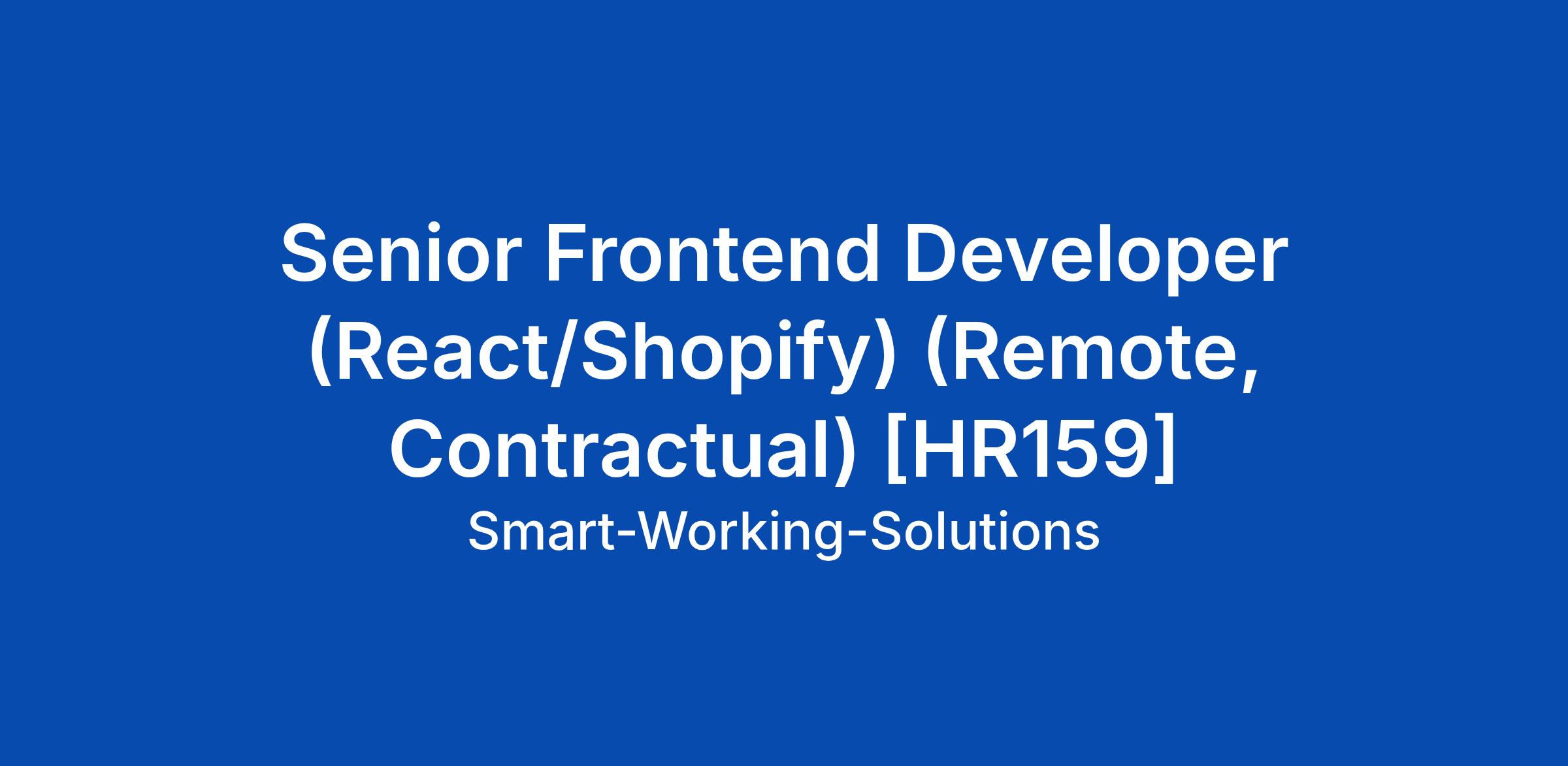 Senior Frontend Developer (React/Shopify) (Remote, Contractual) [HR159]