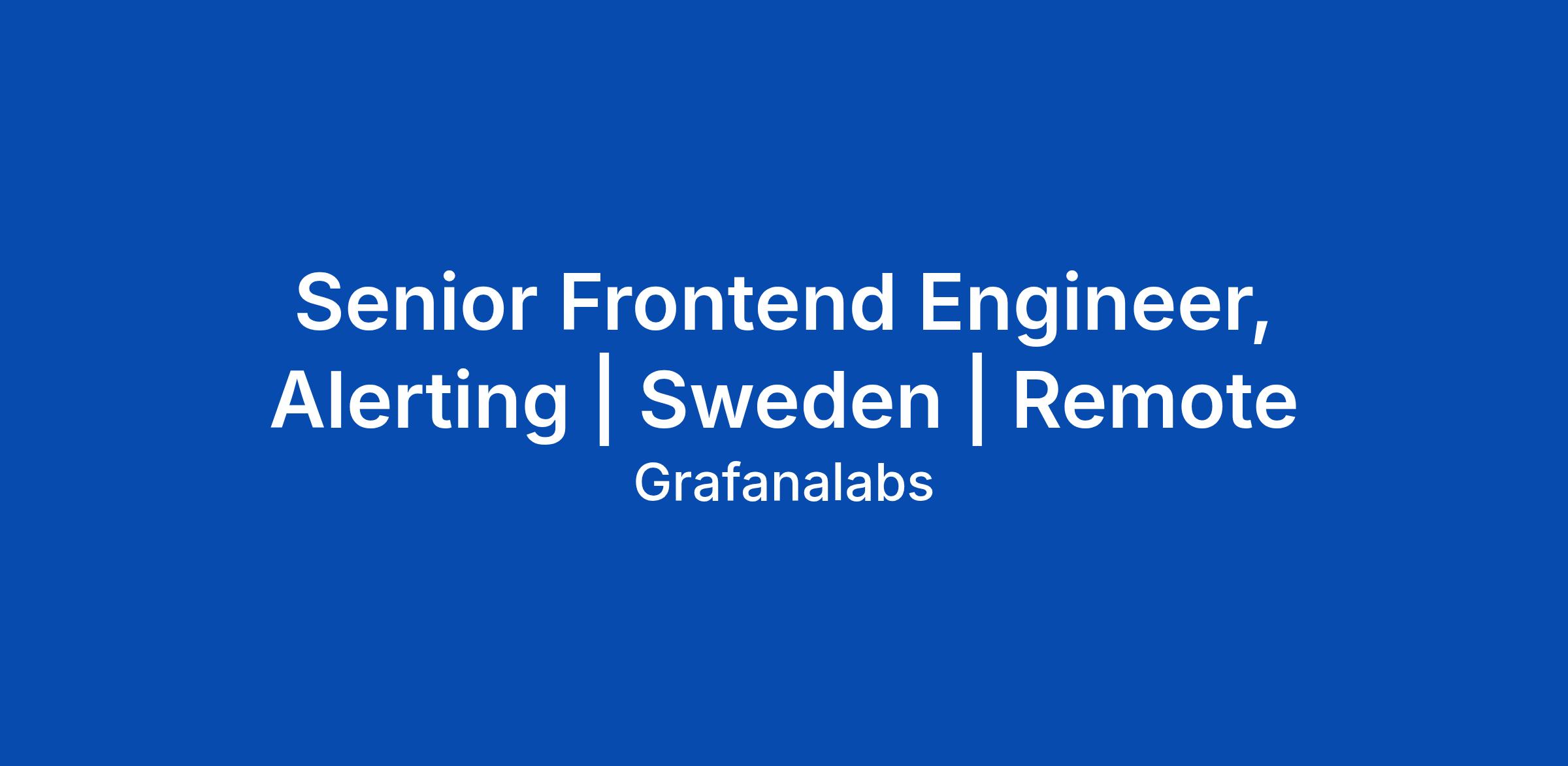 Senior Frontend Engineer, Alerting | Sweden | Remote