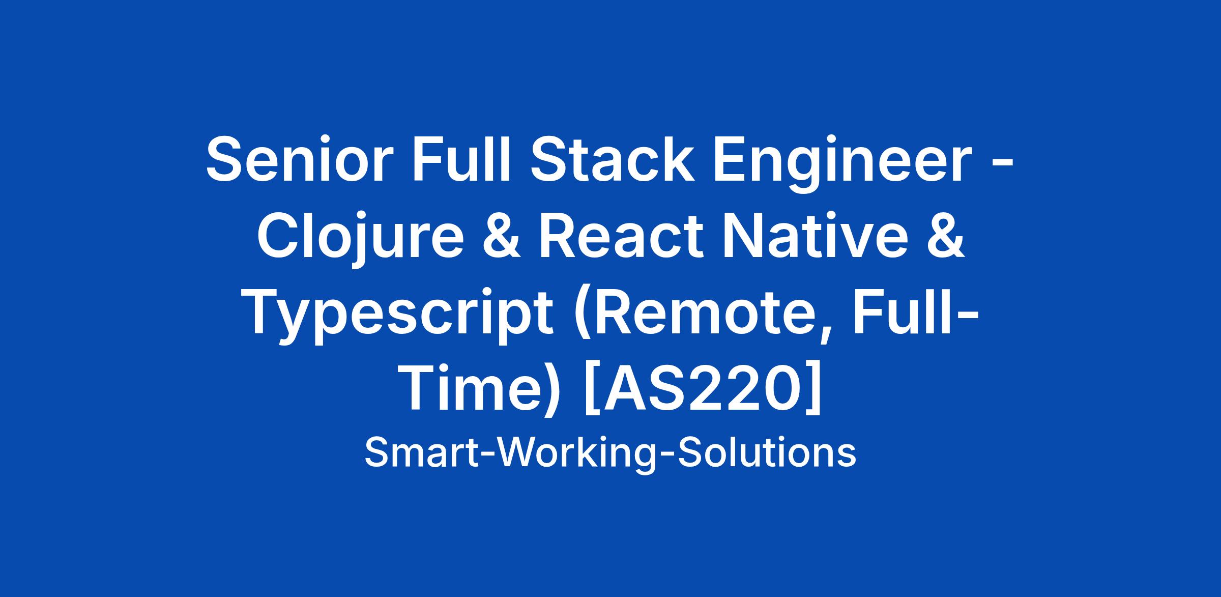 Senior Full Stack Engineer - Clojure & React Native & Typescript (Remote, Full-Time) [AS220]