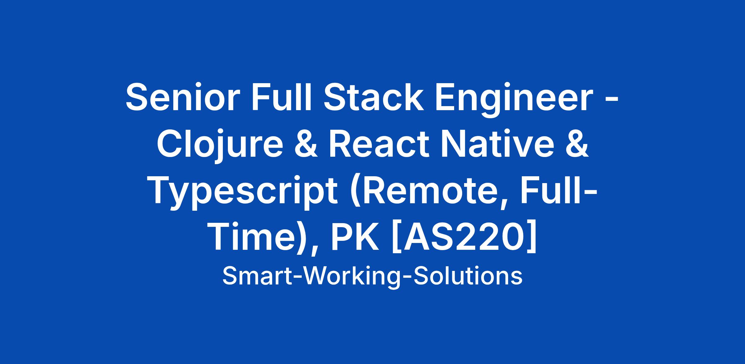 Senior Full Stack Engineer - Clojure & React Native & Typescript (Remote, Full-Time), PK [AS220]