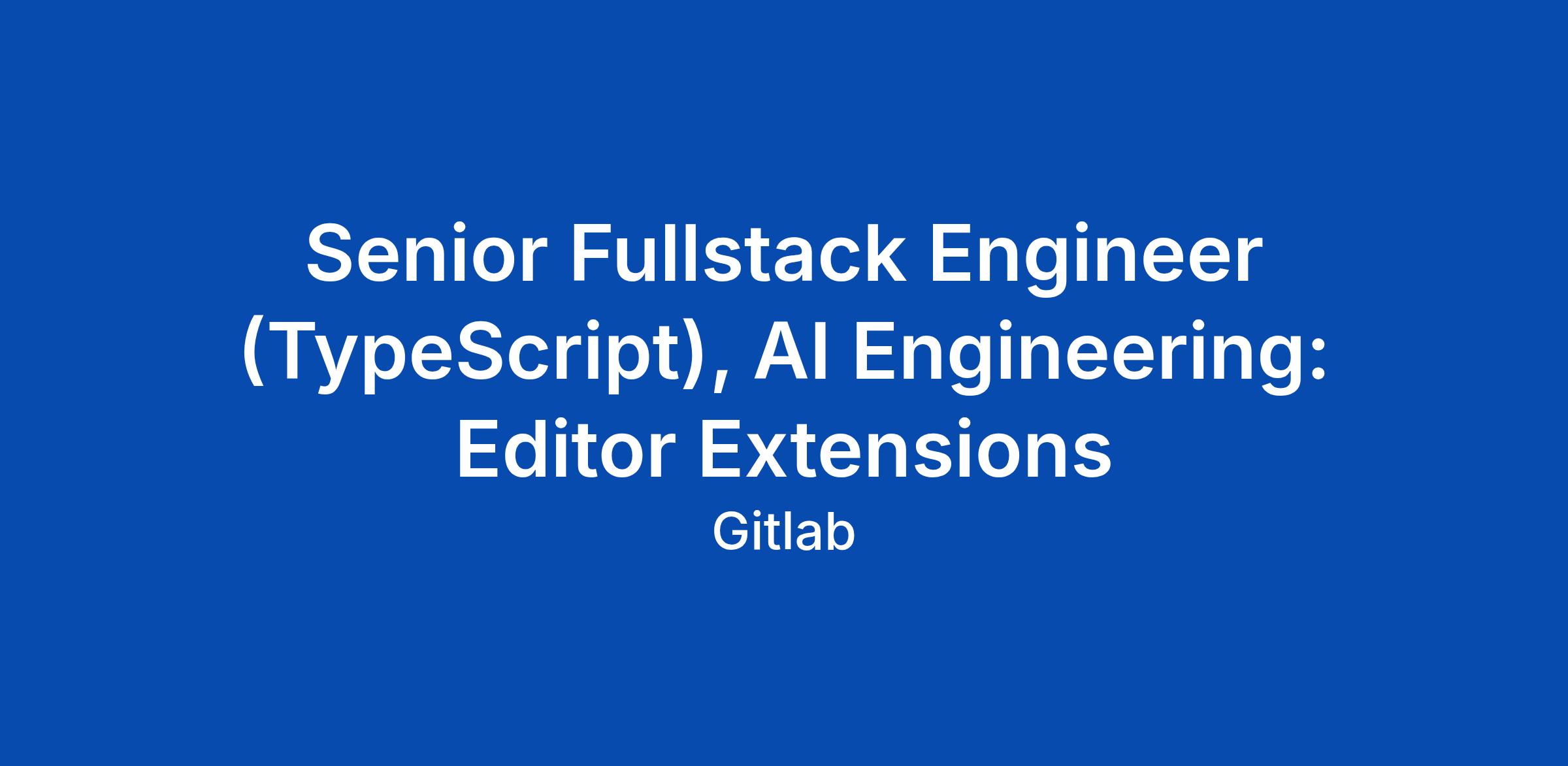 Senior Fullstack Engineer (TypeScript), AI Engineering: Editor Extensions