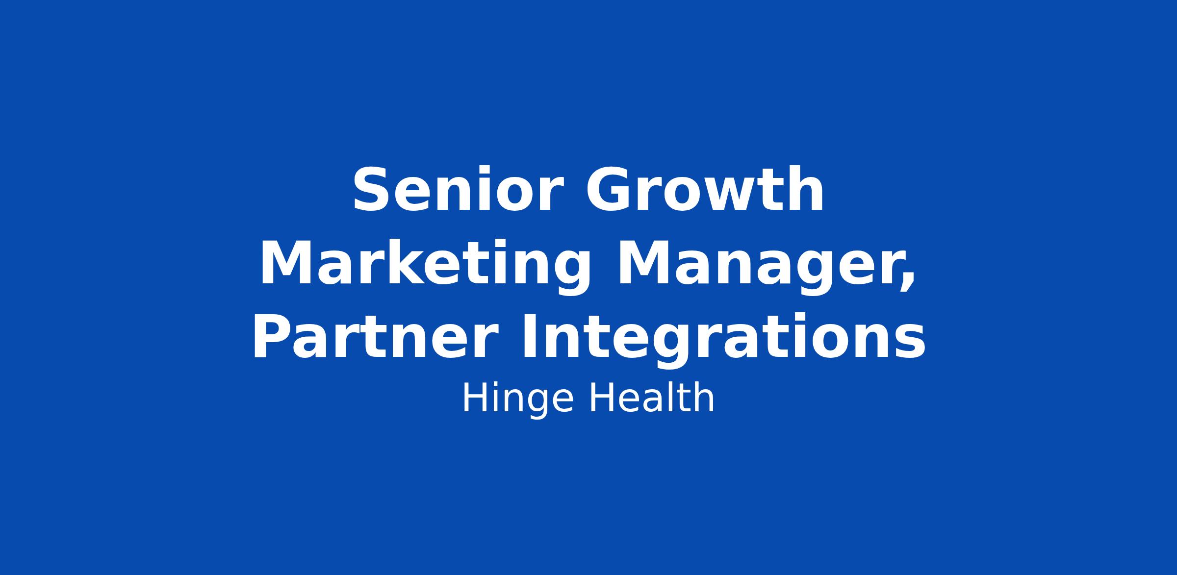 About the Role As the Senior Growth Marketer, Partner Integrations, you sit at the intersection of marketing execution, business strategy and technical integration. In this role you operate primarily as a strategic Growth marketer tasked with driving new members to Hinge Health. You achieve this by serving as a bridge between external partners, the Hinge Health growth apparatus and internal Product, Engineering and Commercial teams. You understand how to build and manage partnerships, turning external requirements and business motivations into scalable and mutually beneficial programs. Externally, you represent Hinge Health to current and potential partners building trust through clear communication and deep knowledge. Internally, you collaborate across teams to devise, prioritize, and execute high-impact initiatives. Your success will be measured by your ability to simplify complex challenges, prioritize among numerous opportunities, and lead strong execution to evolve our partner integrations function, driving growth and deepening competitive advantage. What Youβll Accomplish - Drive New Member Sign Ups: Drive accelerated growth by launching and optimizing partner integrations, e