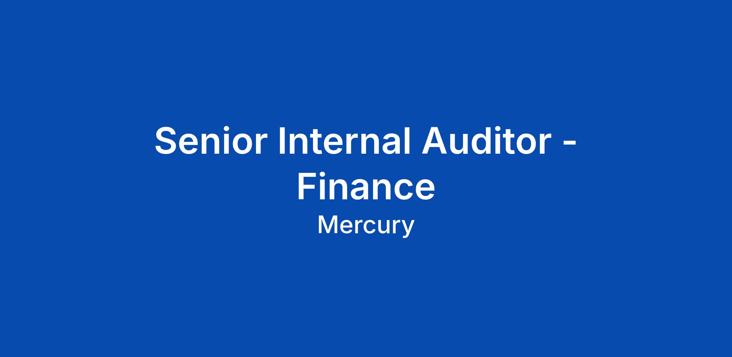 Mercury is building a complete finance stack for startups. We work hard to create the easiest and safest banking* experience possible to simplify entrepreneurs' and business ownersβ financial lives. To accomplish this mission, not only do we have to build/maintain a magical banking platform but must also develop and uphold the trust and safety of our customers and the financial industry. To contribute to this effort, weβre looking to hire a Senior Internal Auditor to support the efforts of our Internal Audit function at Mercury in the execution of our audit plan. Youβll help drive audits internally within Mercury as well as support audits being conducted externally by partners and third parties. Over time, you will become a subject matter expert on Mercuryβs finance and accounting processes.