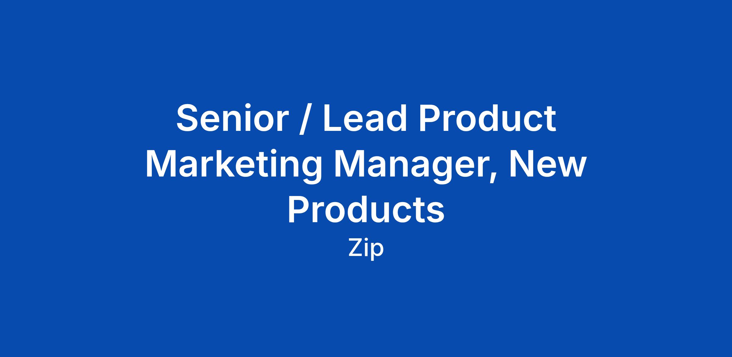 Senior / Lead Product Marketing Manager, New Products